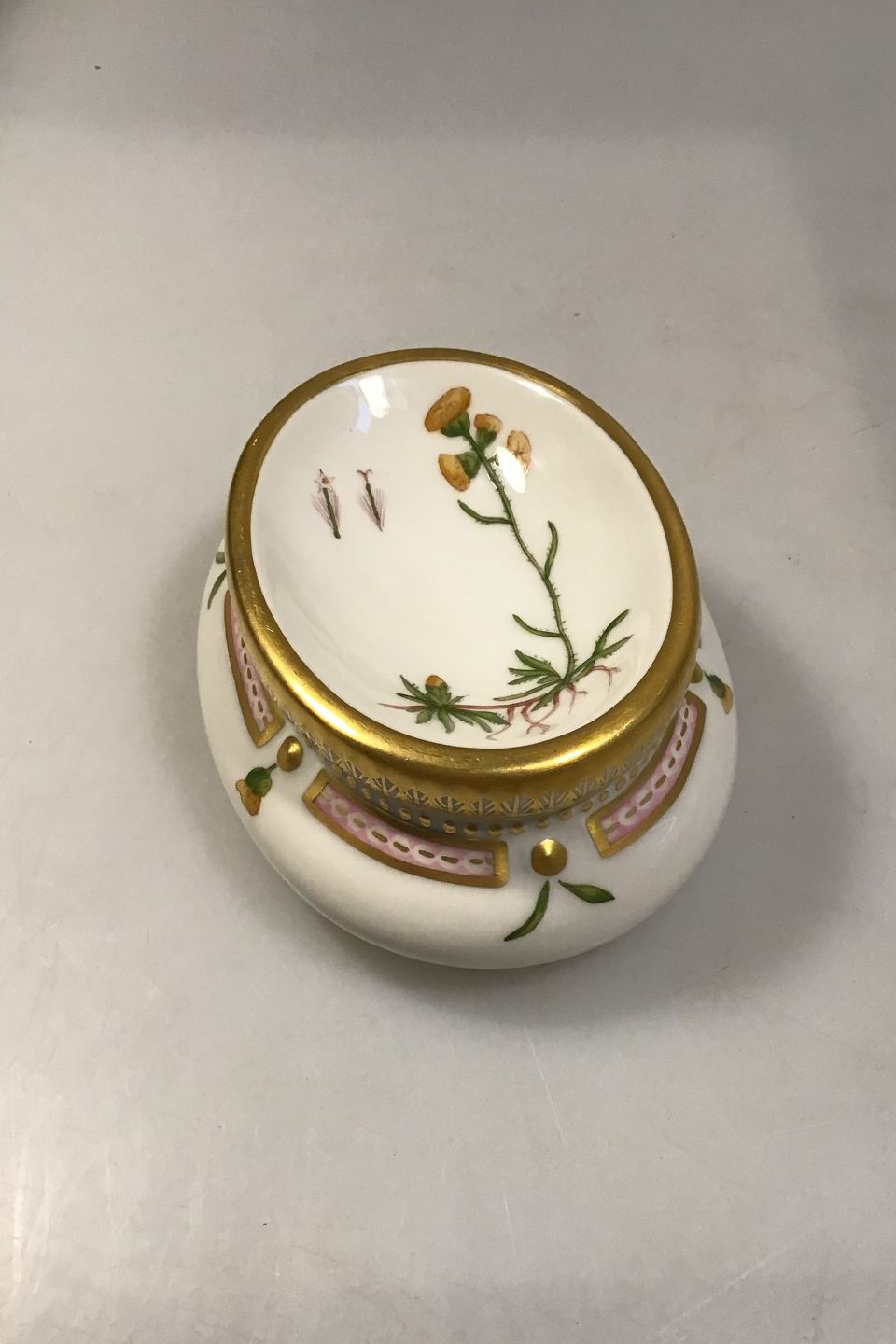 Royal Copenhagen Flora Danica Salt kar No 3557 Latinsk Navn Gnaphalium alpinum L Måler 11cm x 8 cm (4.33 inch x 3.14 inch)