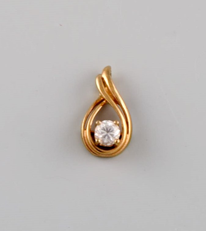 Skandinavisk guldsmed. Vedhæng i 14 karat guld prydet med halvædelsten.