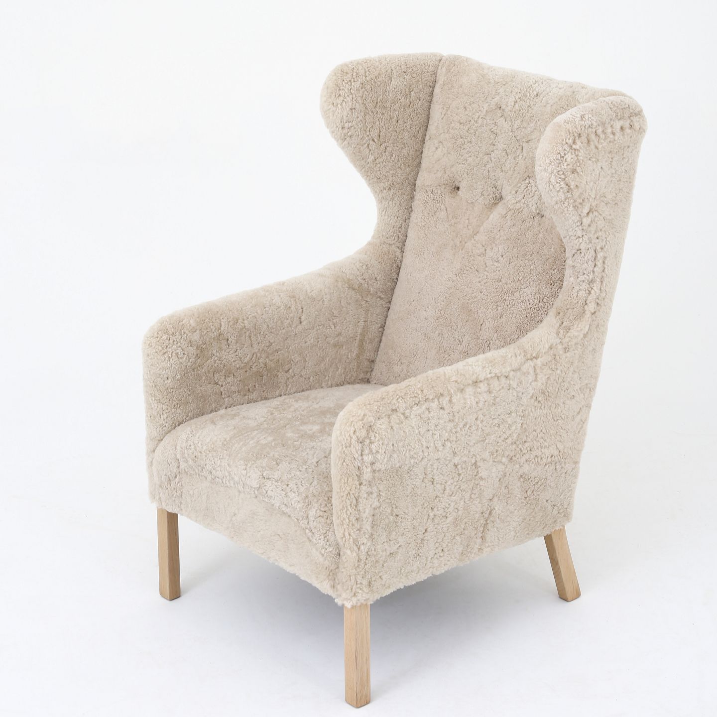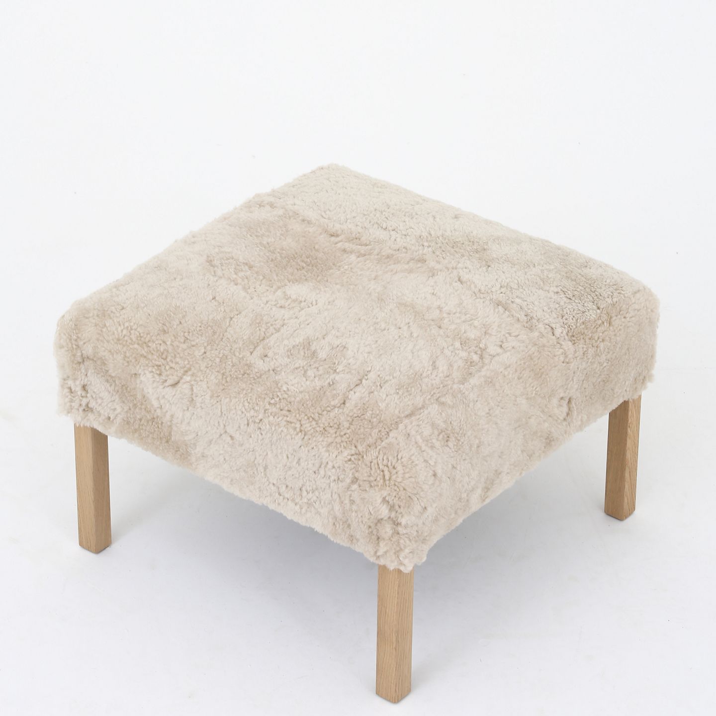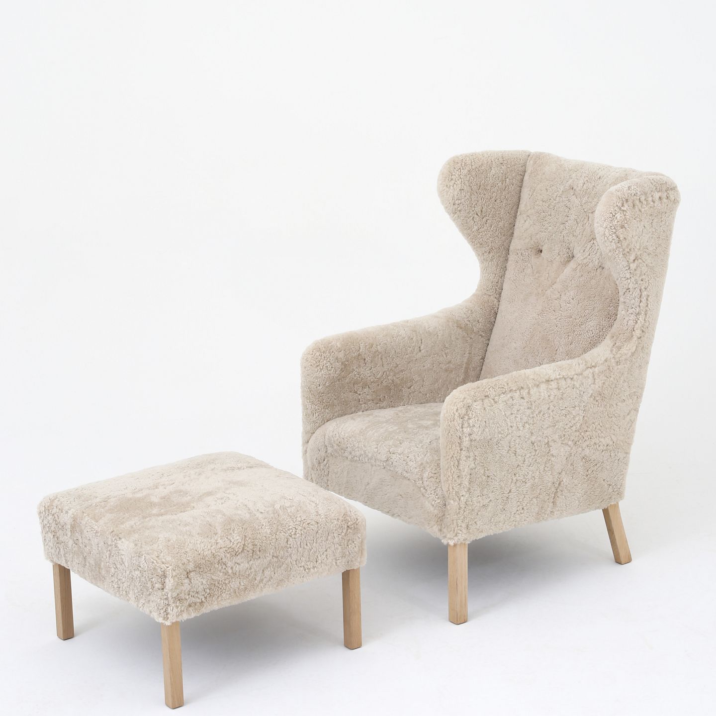 'Slotsholm' easy chair with matching foot stool in new lambskin.