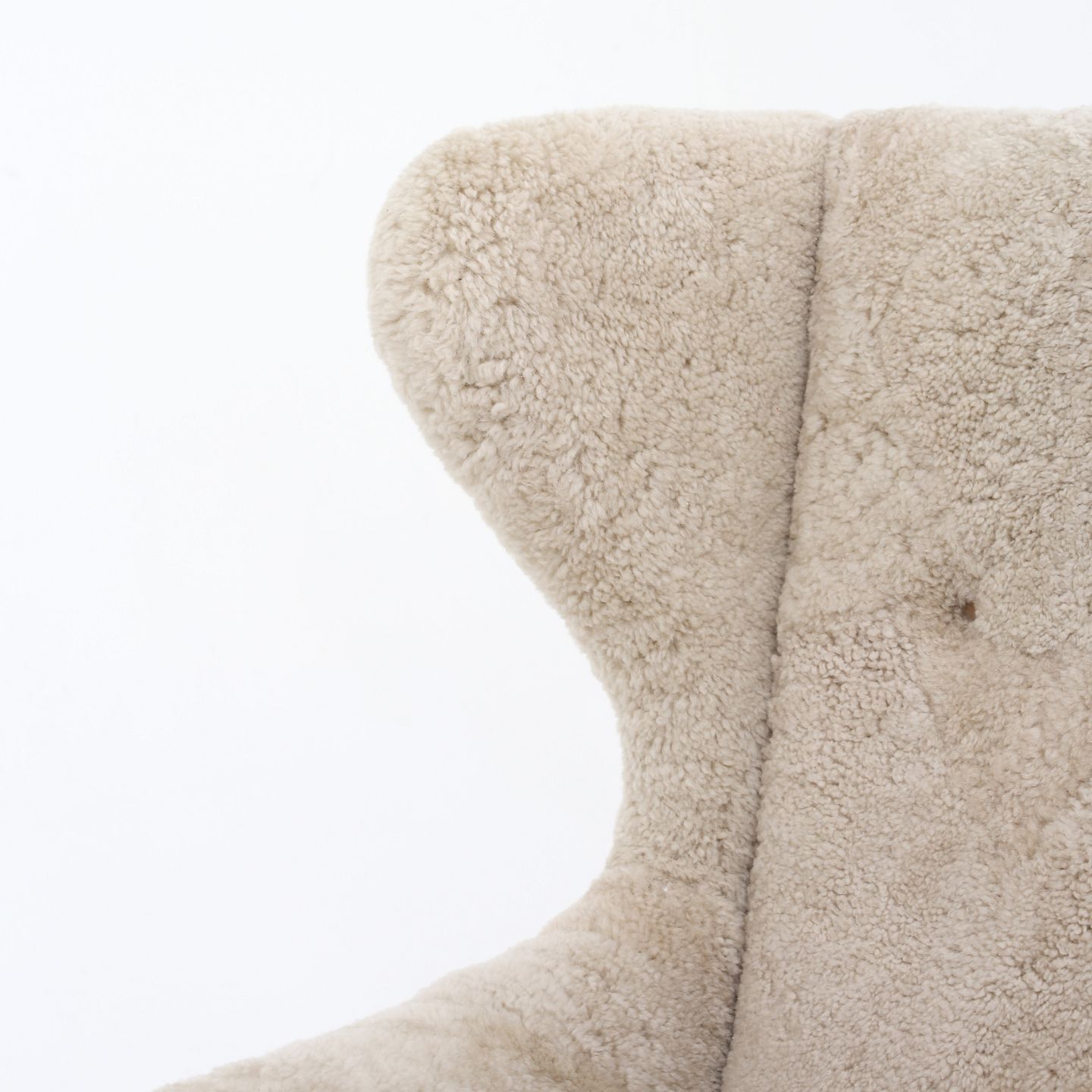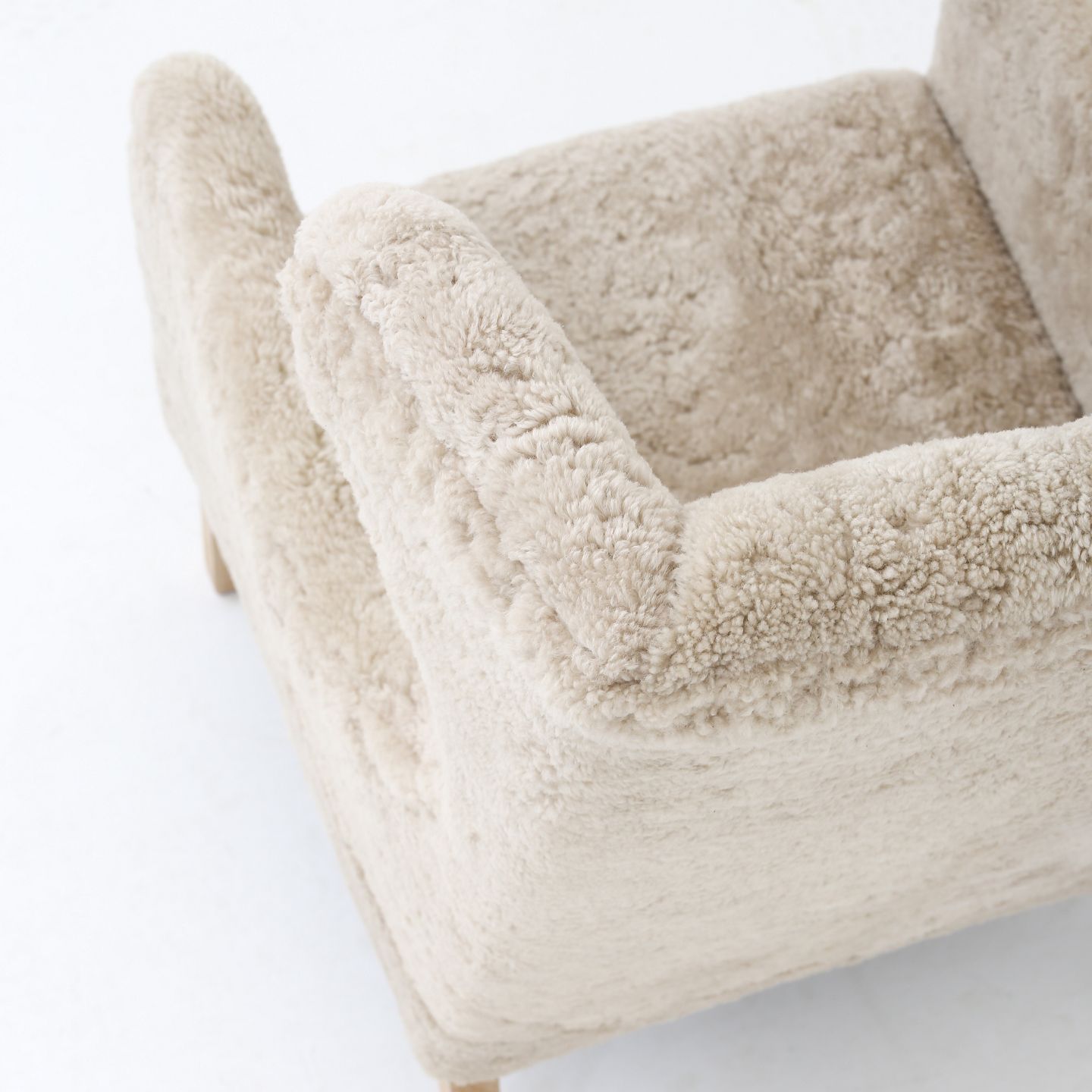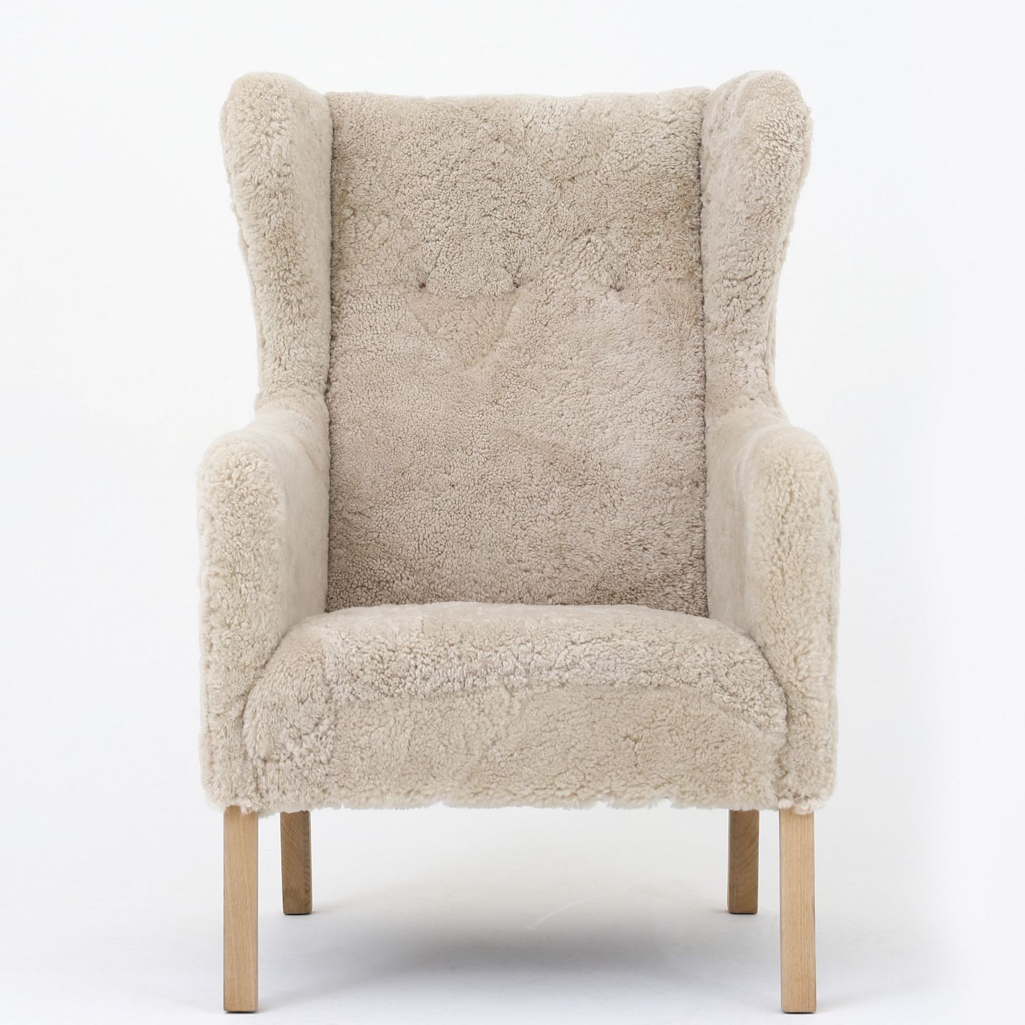 'Slotsholm' easy chair with matching foot stool in new lambskin.