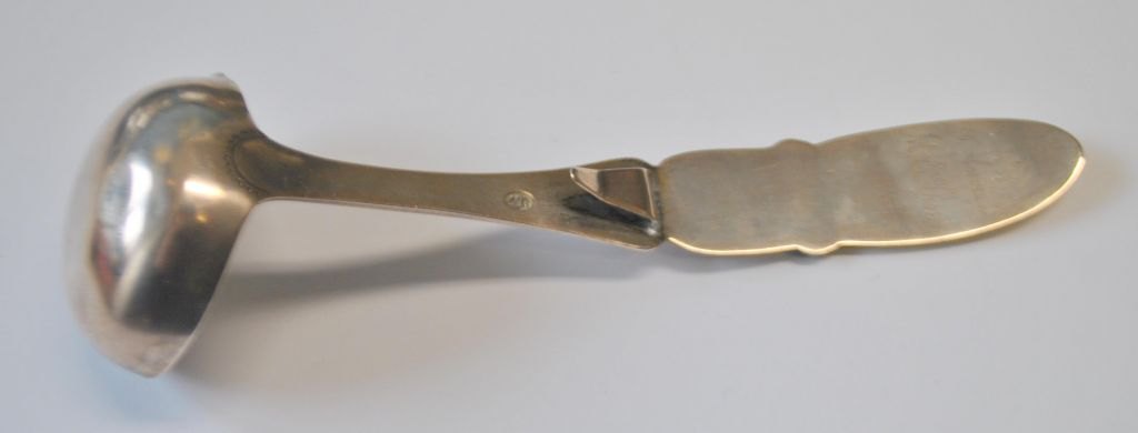 Sauce spoon in silver with three glass stone, 1834, Sønderjylland, Denmark.