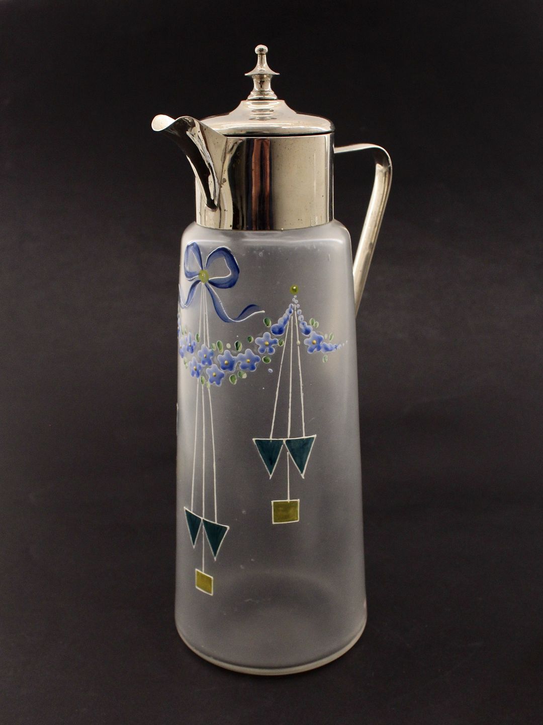 Vinkande matteret glas med art nouveau emalje dekorationer H. 30 cm. emne nr. 488264