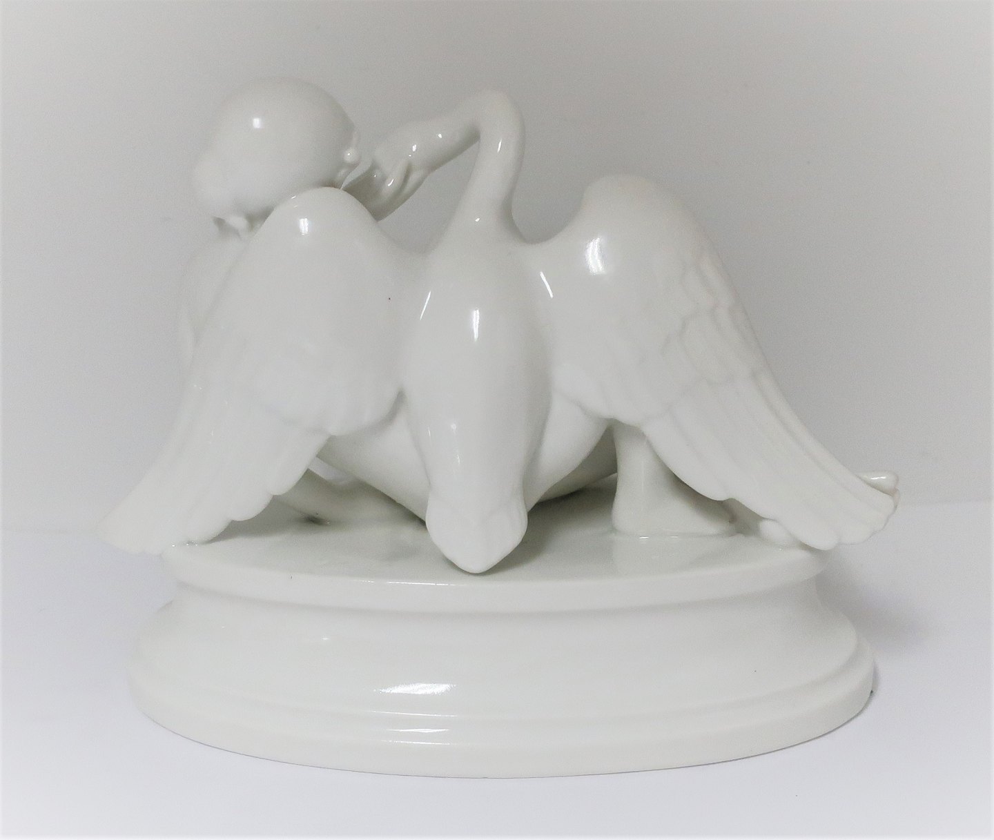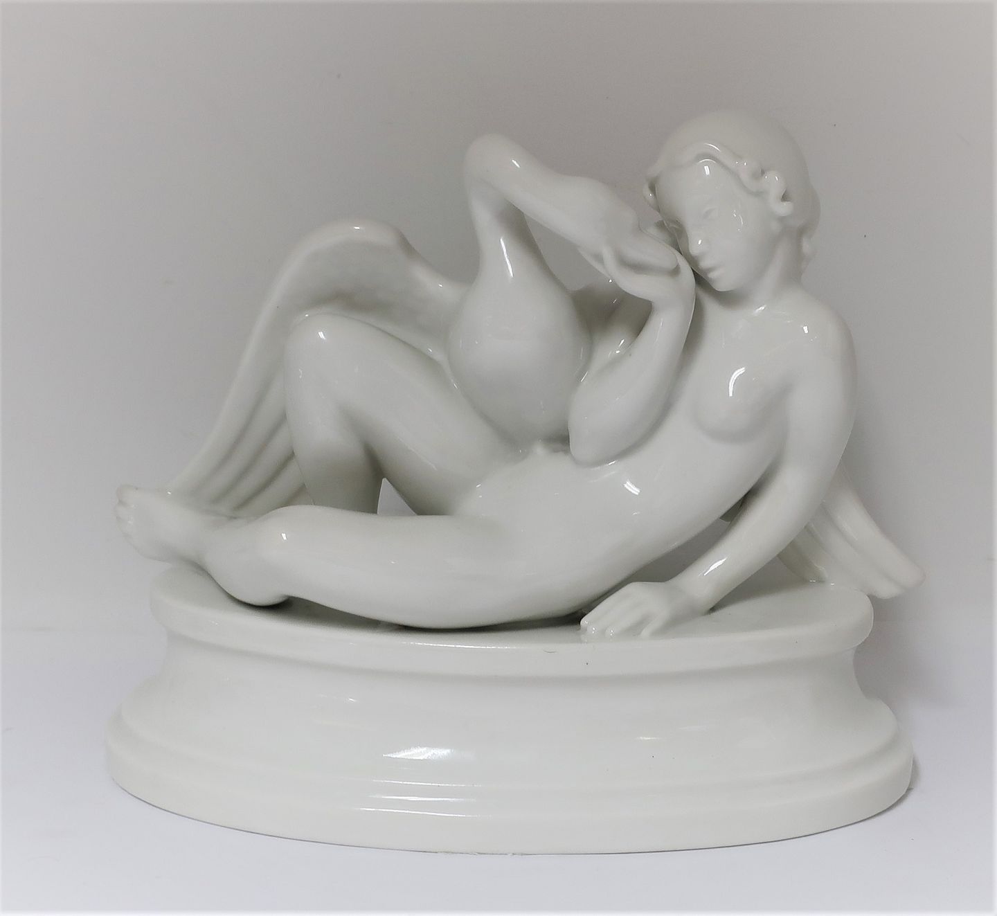 Dahl Jensen. Hvid porcelænsfigur. Leda og svanen. Model 1037. Længde 22 cm. Højde 18 cm. (1 sortering)