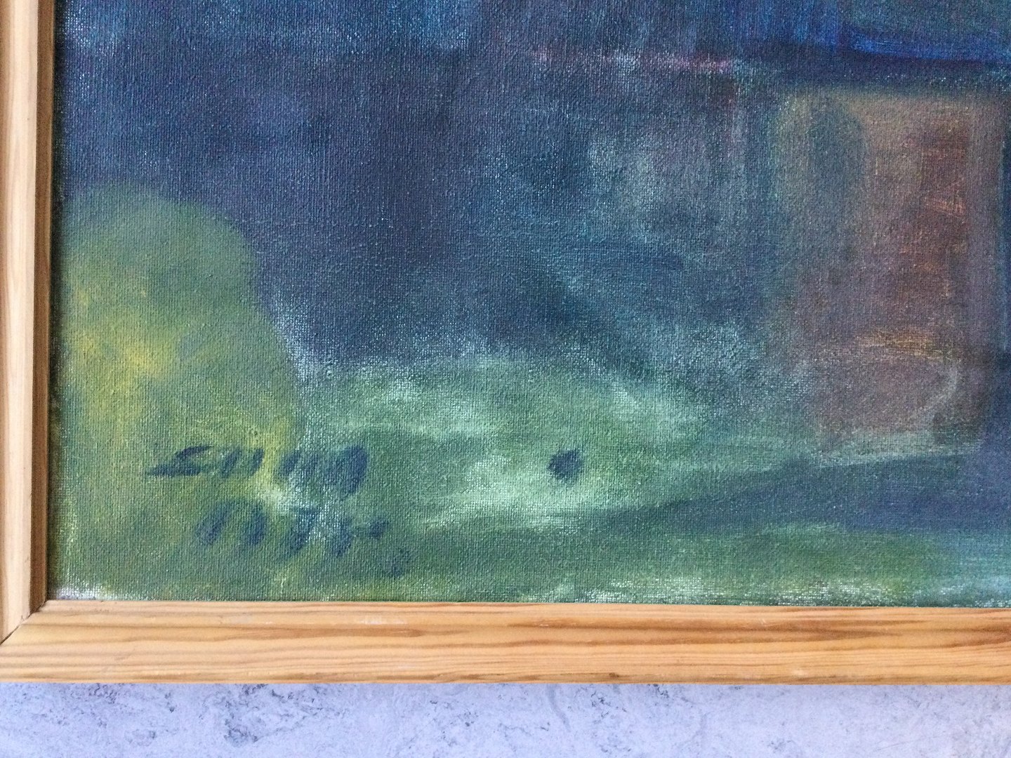 Text available in Danish: Maleri af Svend Aage Tauscher - Byparti med kirke 1975.
