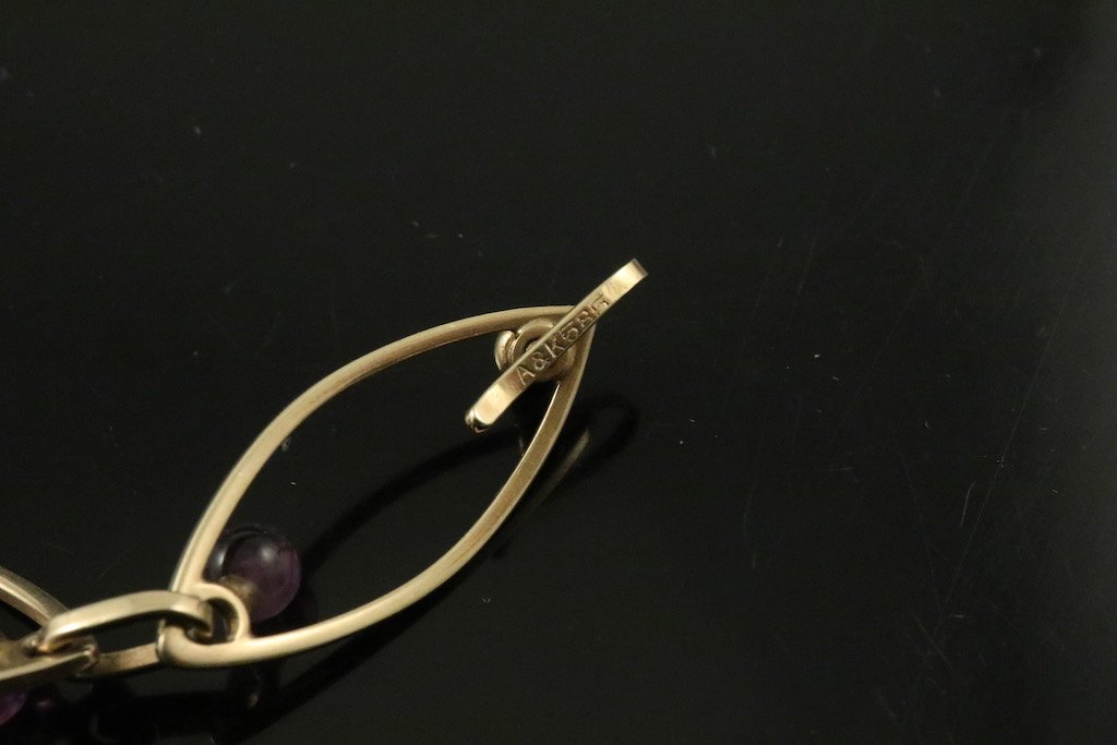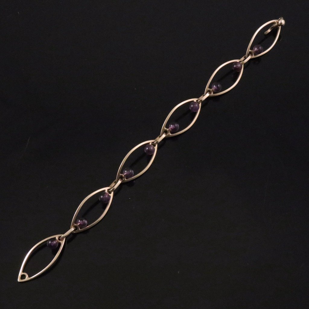 Aarre & Krogs Eftf. Armbånd i 14k guld med ametyster. 1960erne