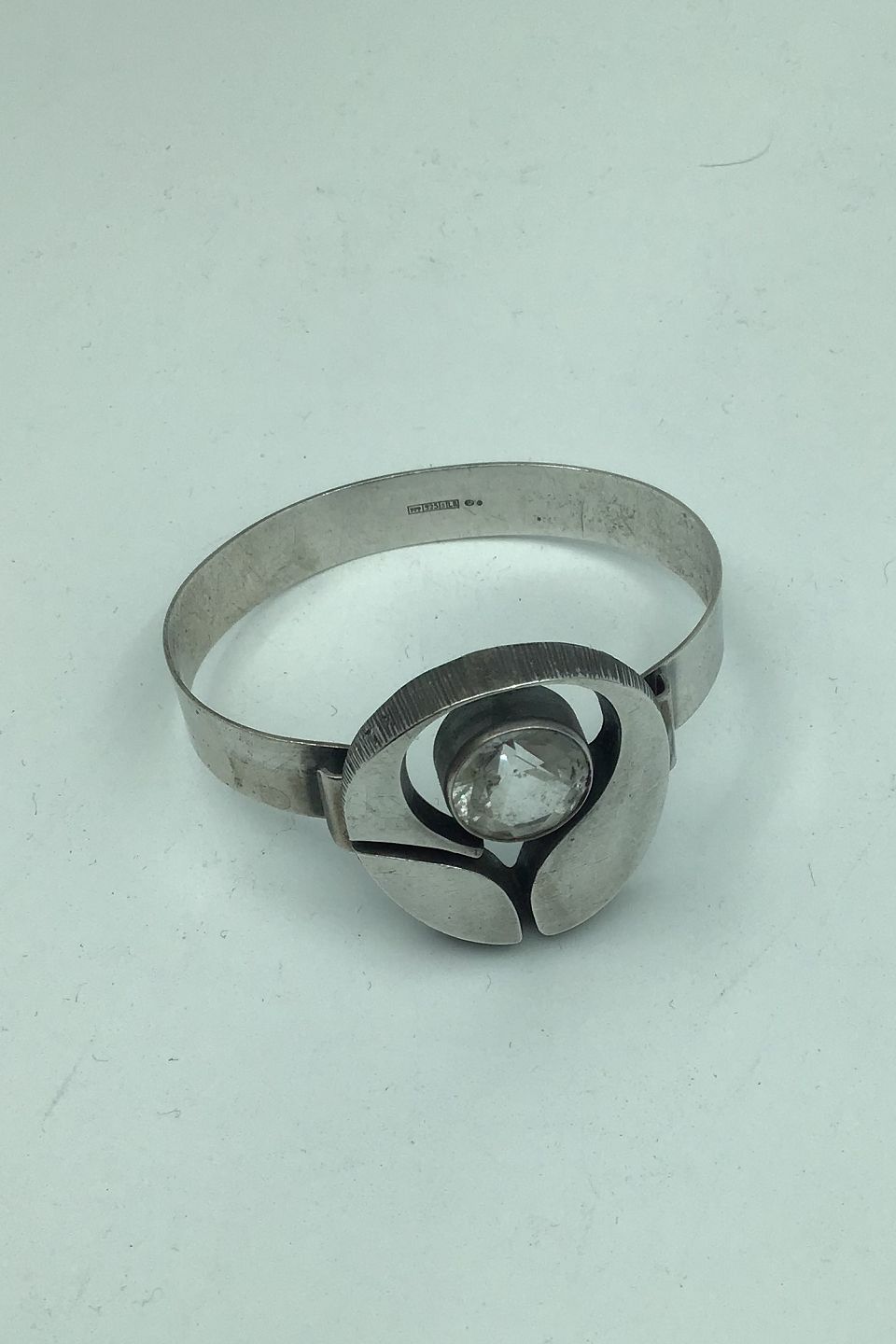 Sten og Laine, Finland, Sterling Sølv Armring, Bjergkrystal Måler indvendigt Diam 6 cm (2.36 inch) Vægt 26,4 gr/0.93 oz