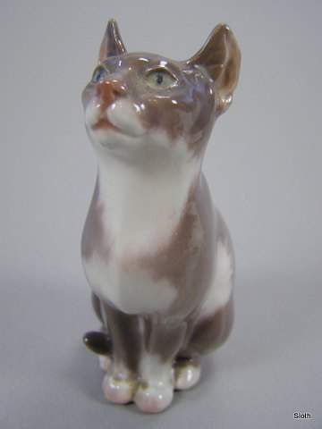 Dahl Jensen 1329 Siddende Kat 1. Sort. H: 9,5 cm.