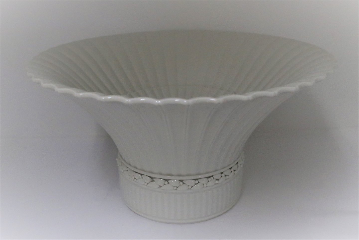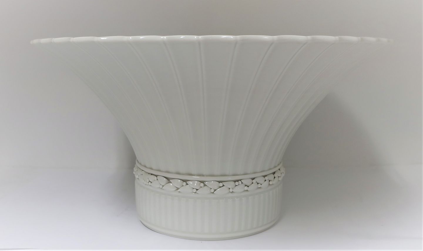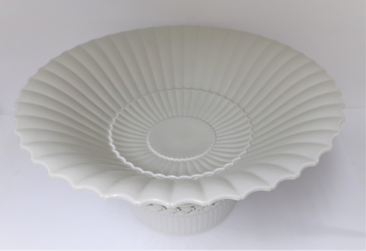 Royal Copenhagen. Stor flot hvid rund skål på fod. Design Arno Malinowski. Model 12470. Højde 20 cm. Diameter 36,5 cm. (1 sortering)