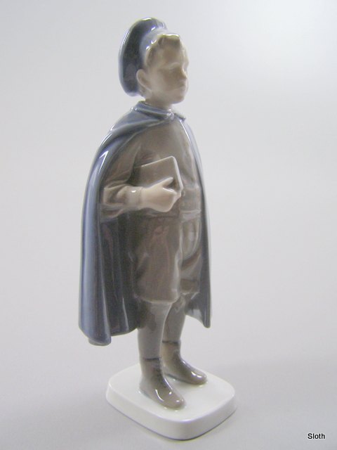 B&G 1720 Dreng med Kappe og Bog 1. sort. H: 22 cm.
