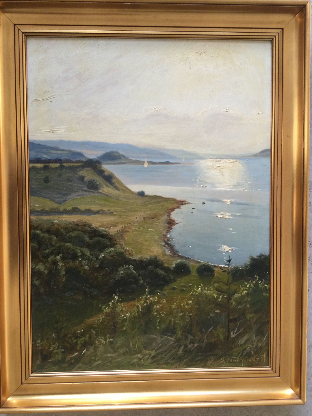 Maleri af Gunner Bundgaard - Udsigt fra Knudshoved (Raget) ved Mariager 1951