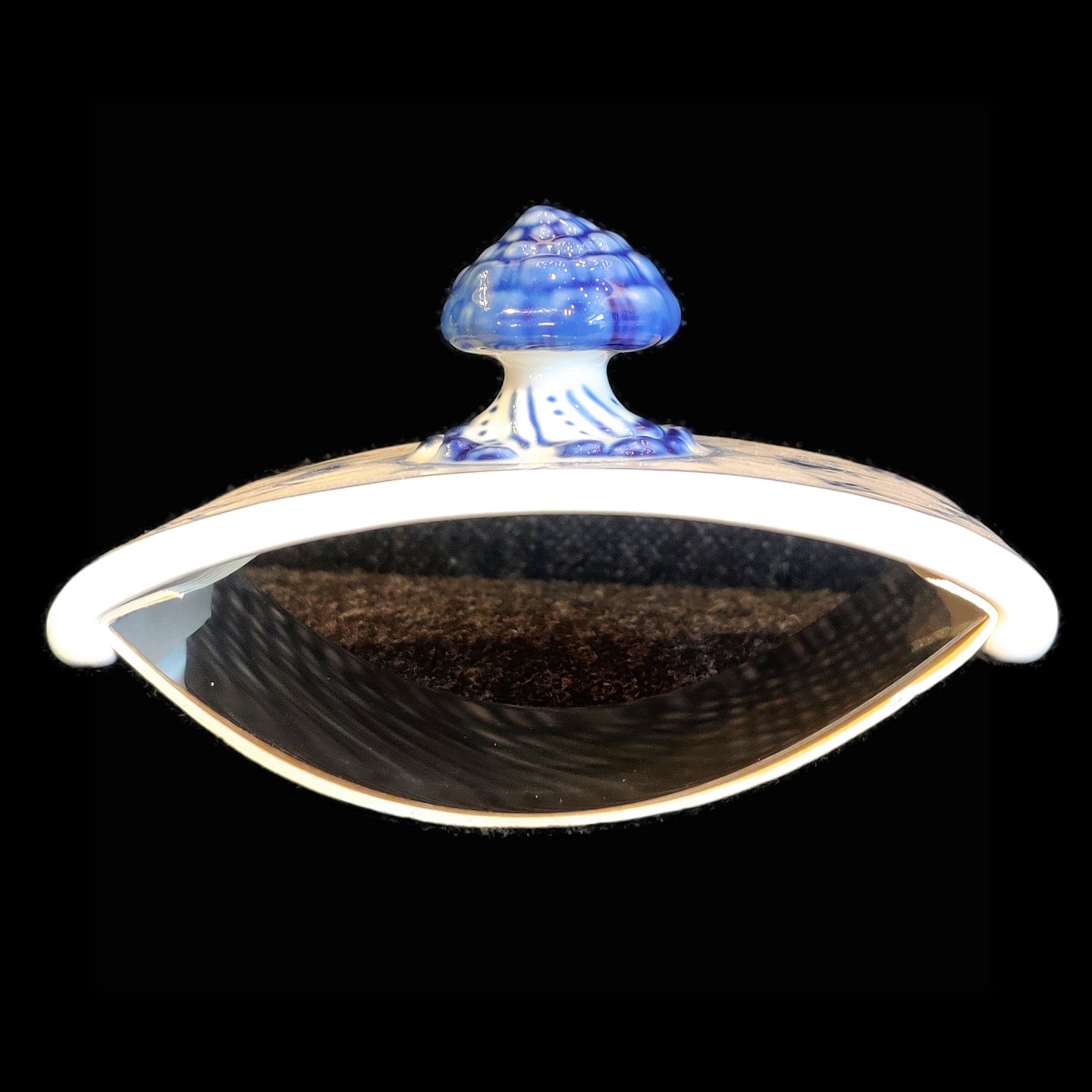 Royal Copenhagen, musselmalet riflet; Blækvugge i porcelæn