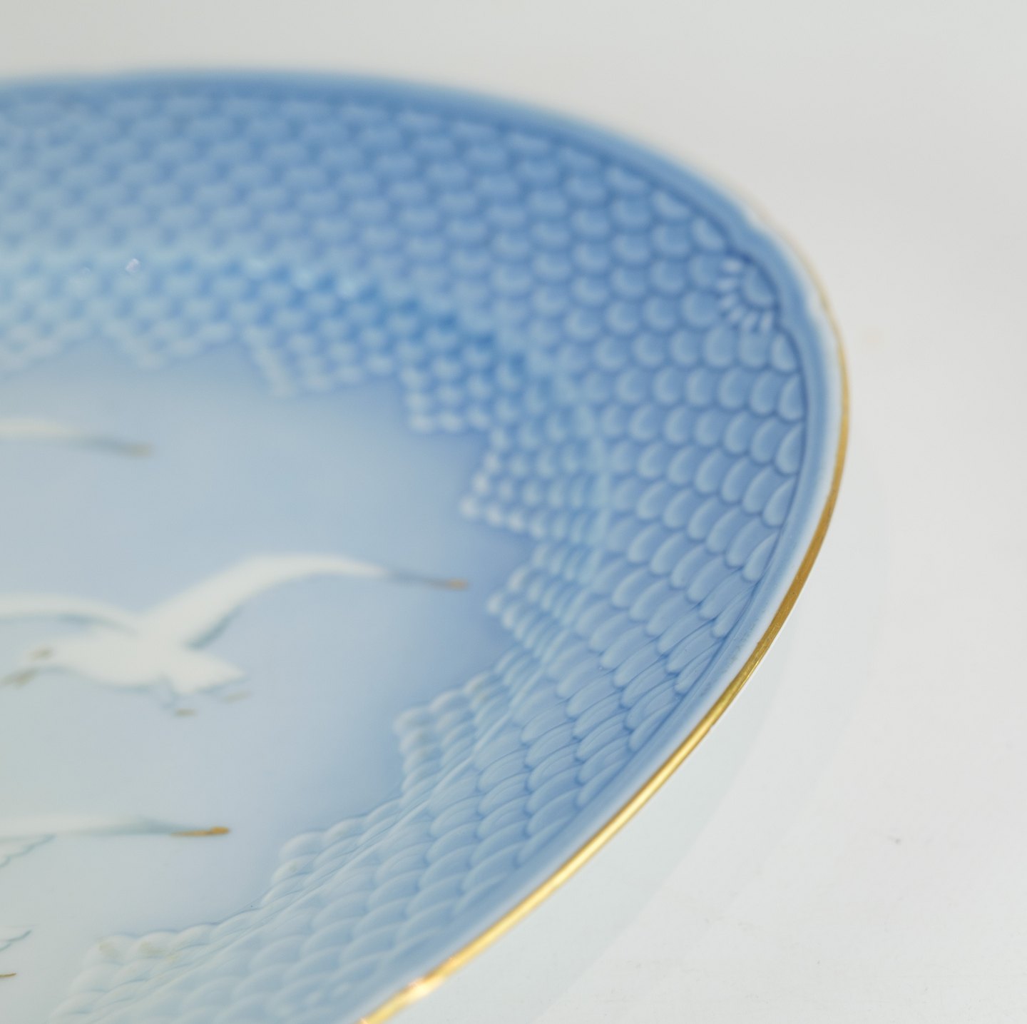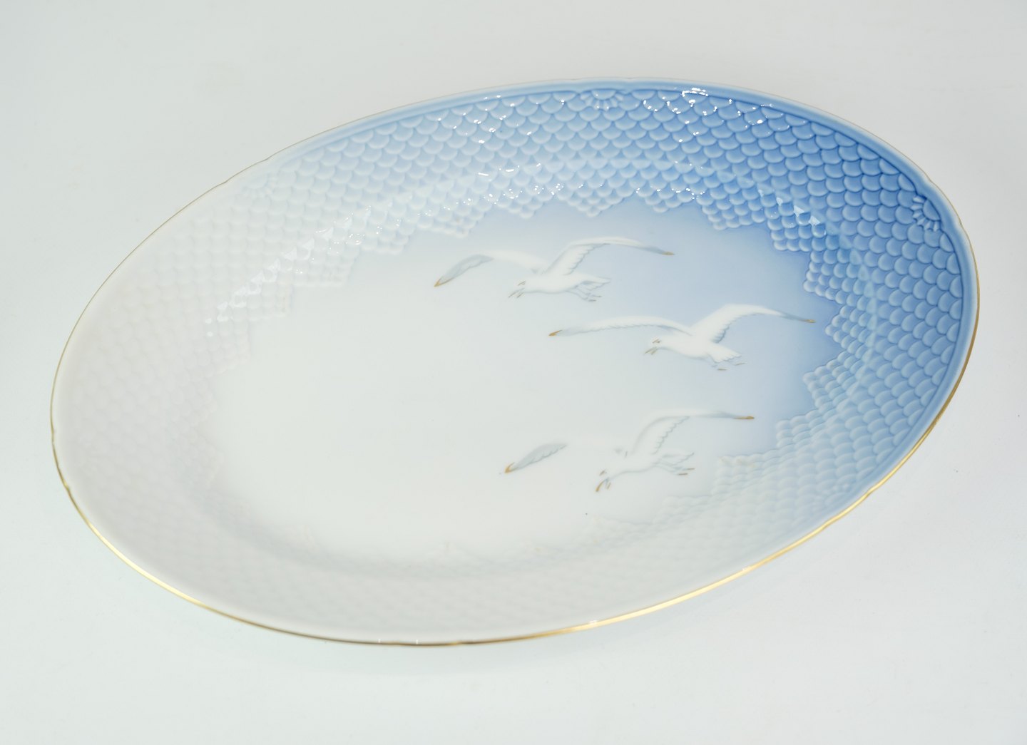 Stort ovalt fad fra Bing og Grøndahl i mågestellet med guldkant No. 13