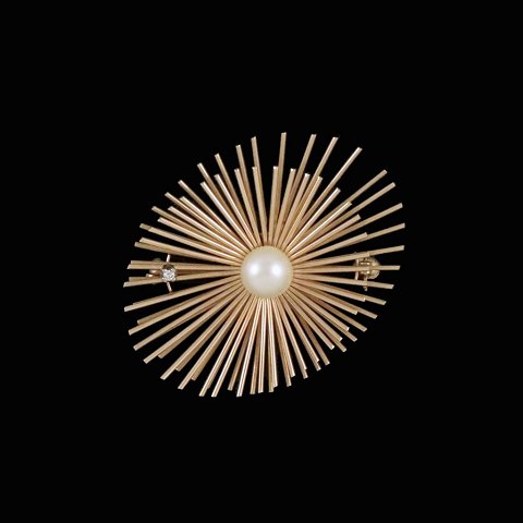 Viggo Wollny. Broche i 14k Guld med perle og brillant 0,03ct.