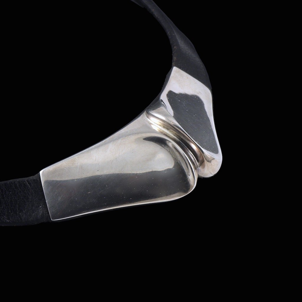 Black leather and Sterling Silver.