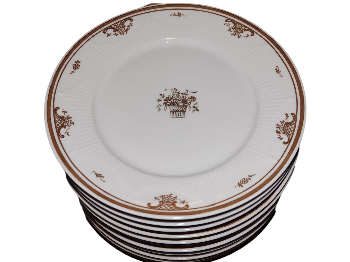 Royal Copenhagen Gold Basket with Ornaments and Small Flowers, luncheon plate.