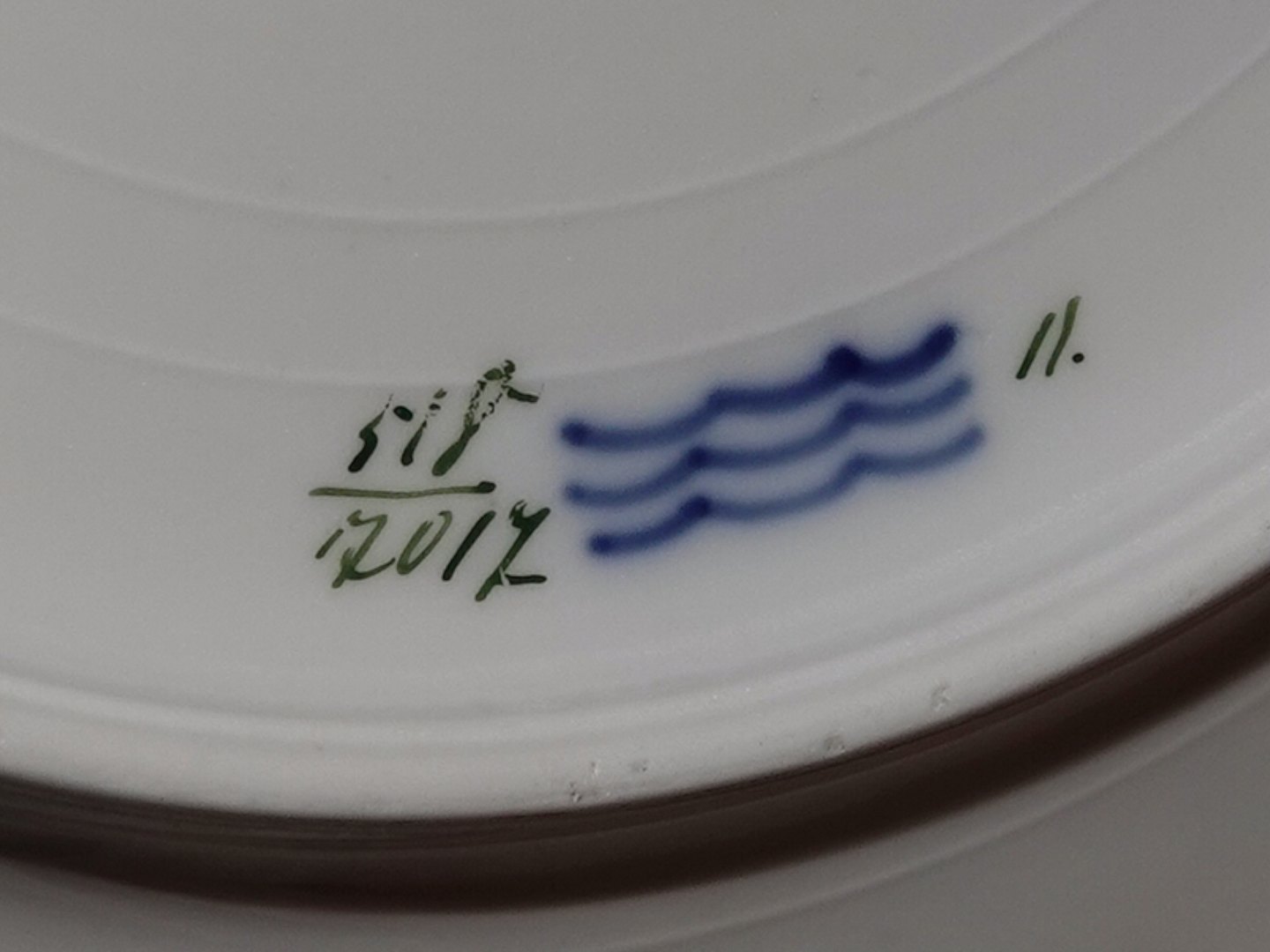 There is slight wear on the gold edge, otherwise perfect condition with no chips, cracks or repairs.