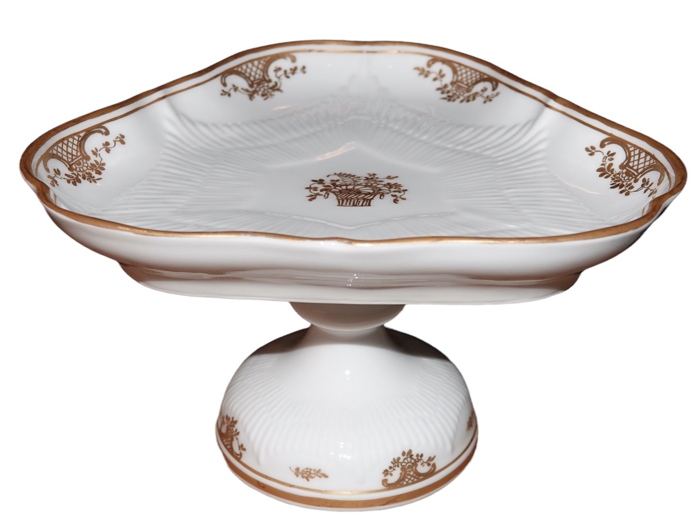 Royal Copenhagen Guldkurv med Ornamenter og Små Blomster, trekantet kageopsats.