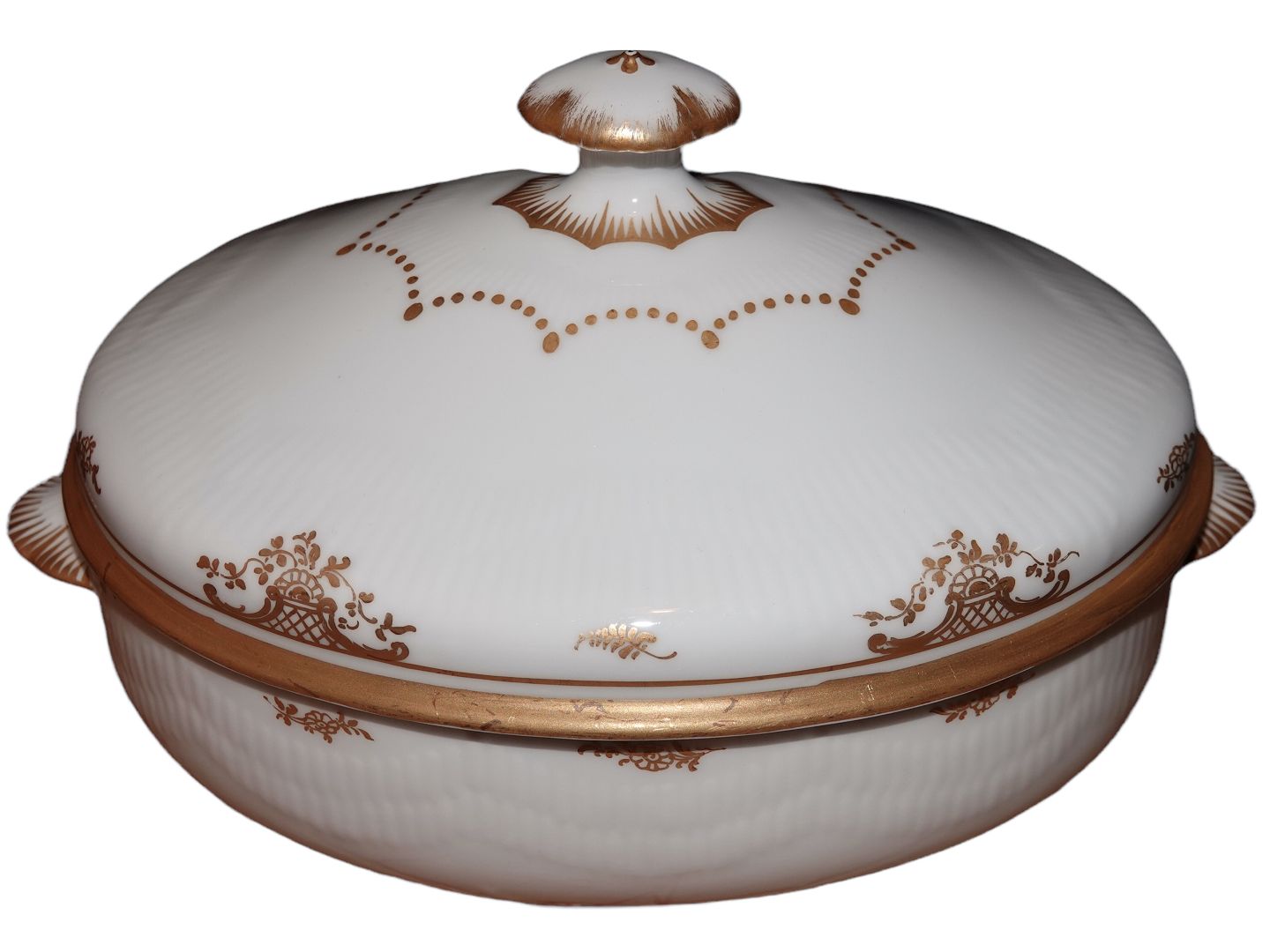 Royal Copenhagen Guldkurv med Ornamenter og Små Blomster, lågfad (lille terrin).