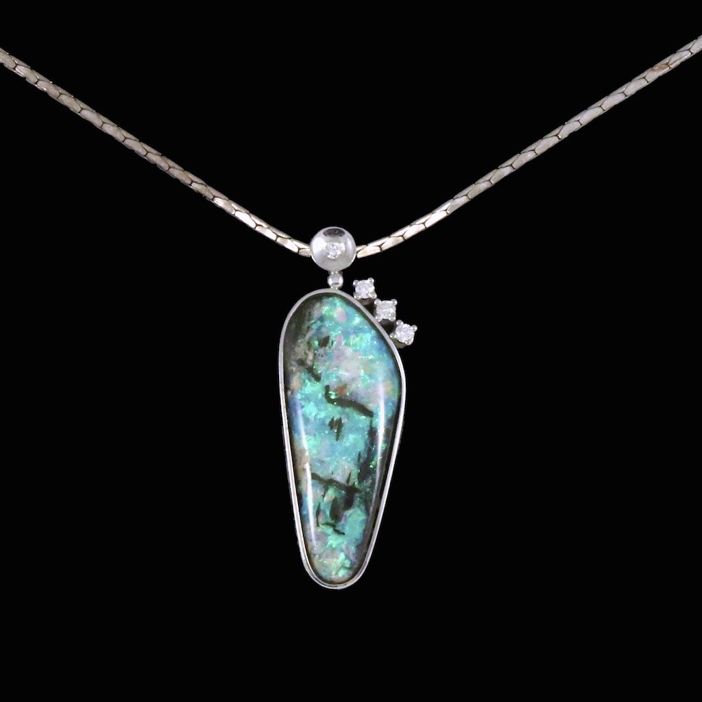 Reeslev Design - Copenhagen. 14k White Gold Pendant with Opal and Diamonds.
