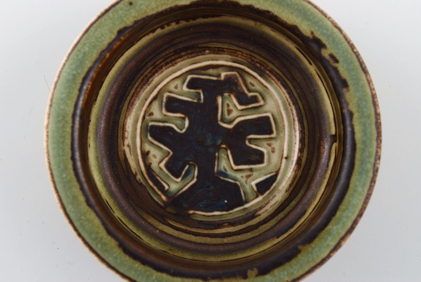 Jørgen Mogensen for Royal Copenhagen. Lav skål i glaseret stentøj. Smuk sung glasur. 1970'erne.
