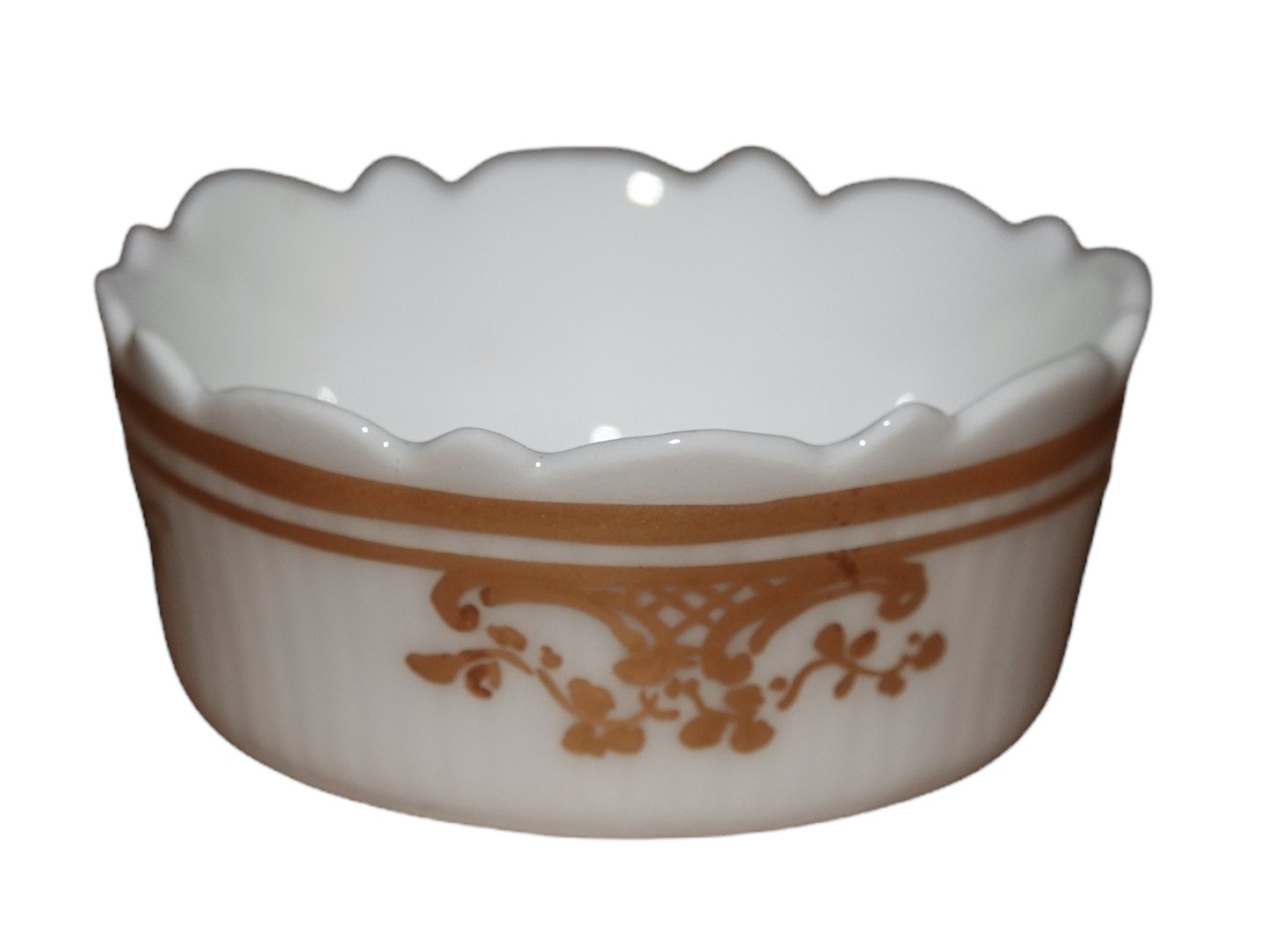 Royal Copenhagen Guldkurv med Ornamenter og Små Blomster, lille rundt saltkar.