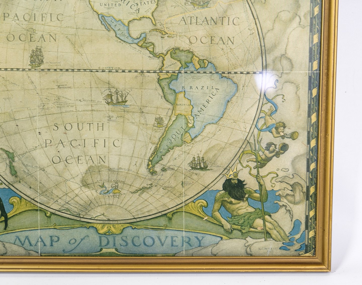 Et kort over den vestlige halvkugle med titel ”Map of discovery” fra omkring 1920’erne