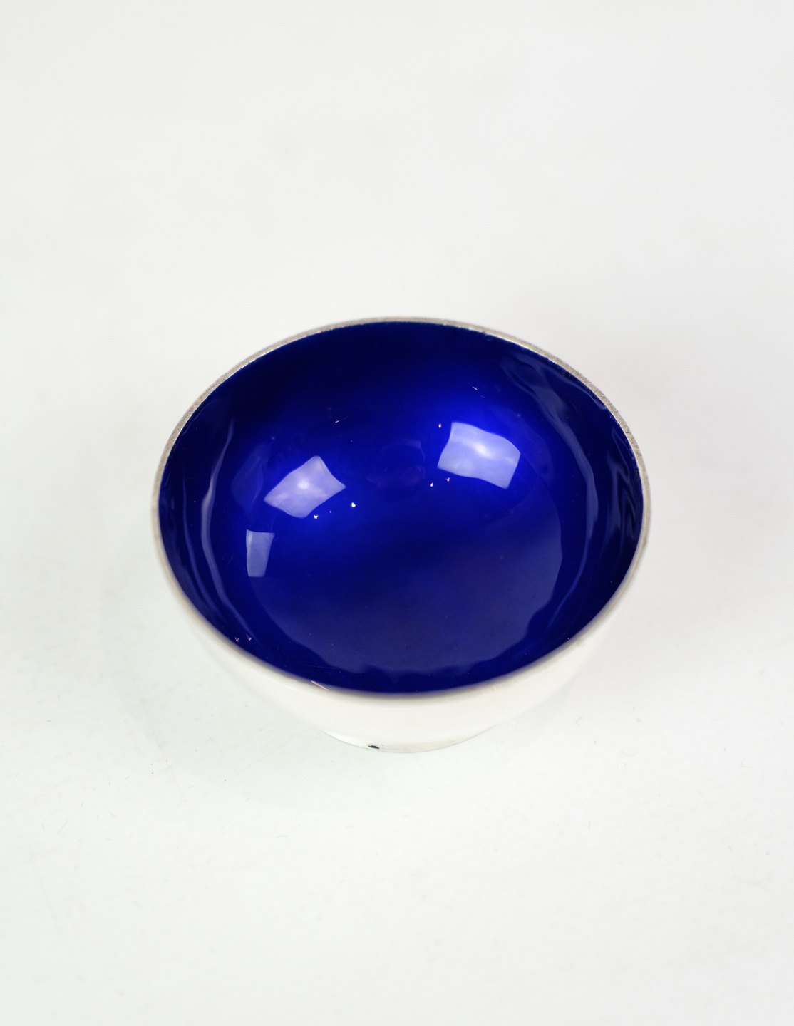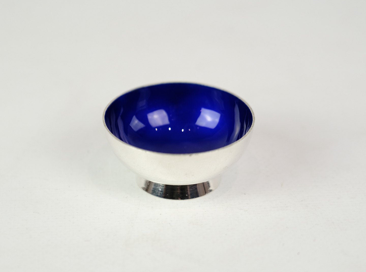 Salt dish designed by A. Michelsen, model A9 with blue enamel, stamped. Fully intact.