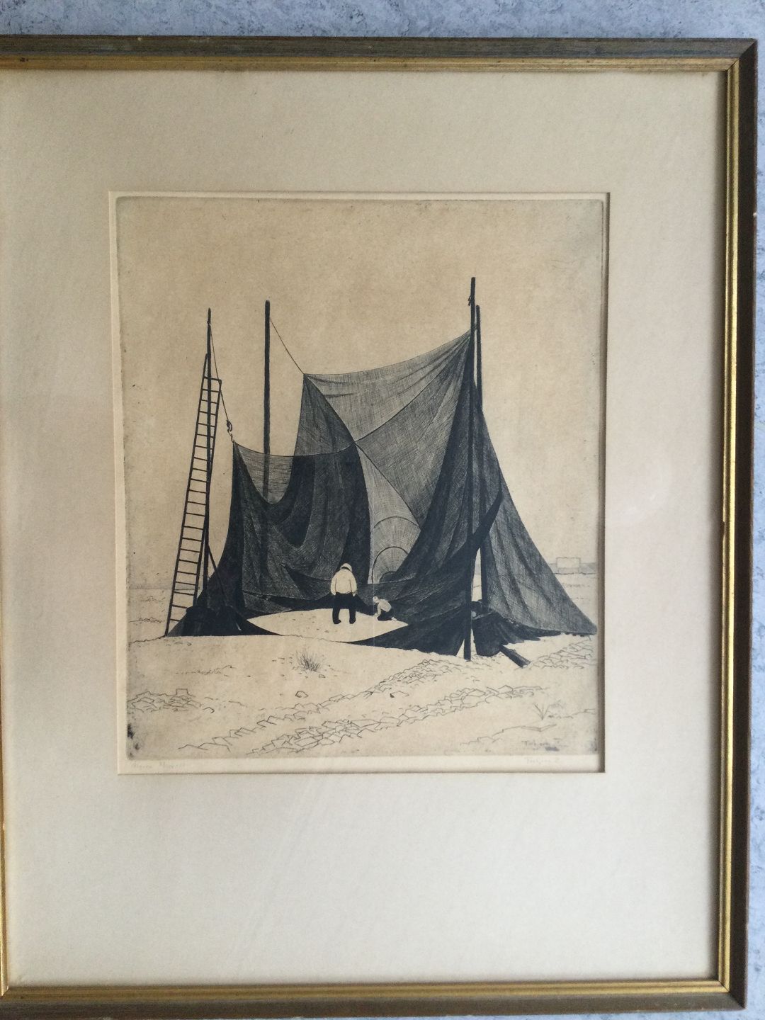 Træsnit af Torbjörn Zetterholm - Ålegarn 1951.