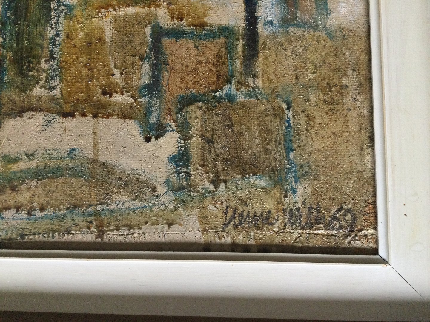 Text available in Danish: Maleri af Heine Vilhelm Larsen - Vigerslev Kirke på Fyn 1969.