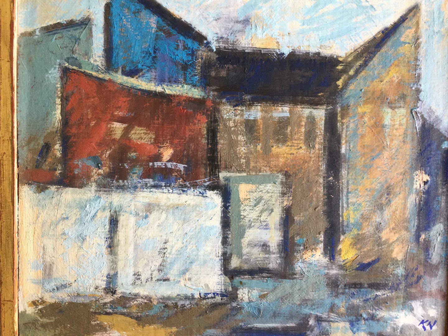 Maleri af Kurt Nedergaard - Gavle - den indre by 1987.