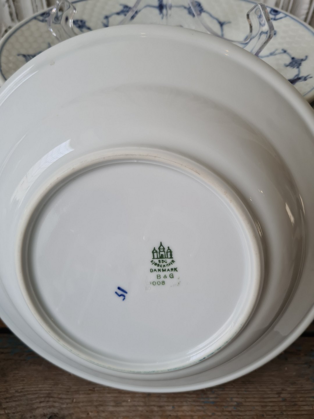 B&G Blåmalet Hotelporcelæn med logo "Kilden" stor dybtallerken no. 1008