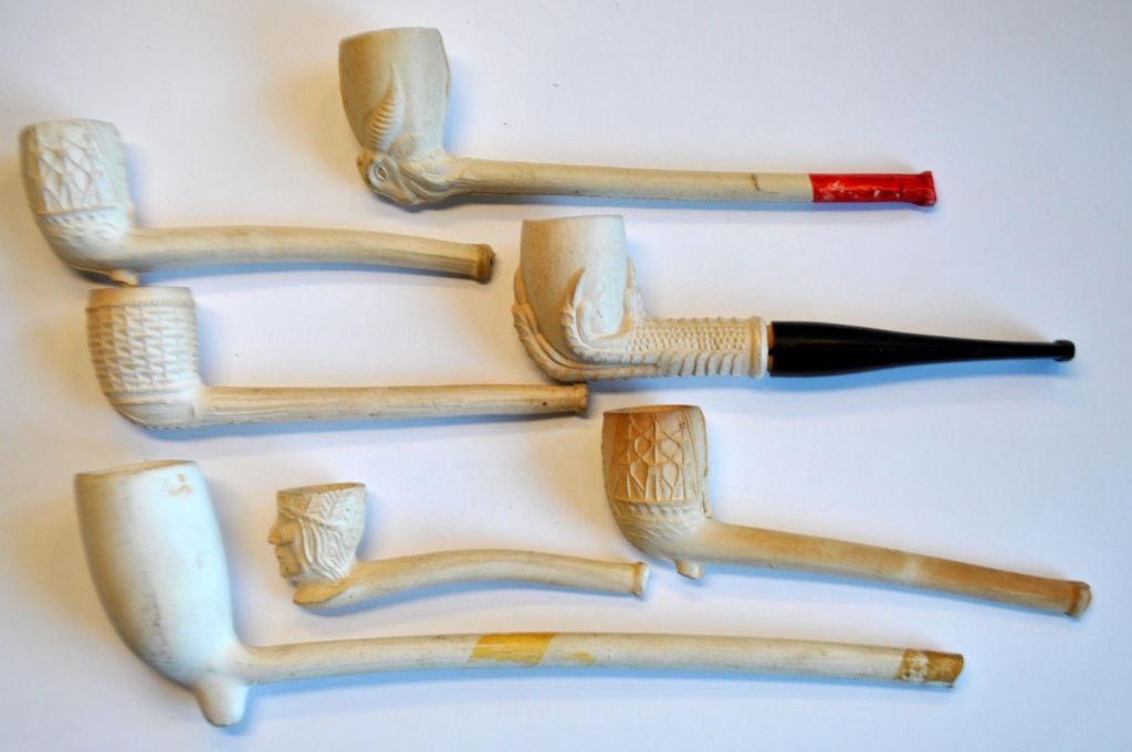 Samling af 7 gamle kridtpiber, 19./20. årh.