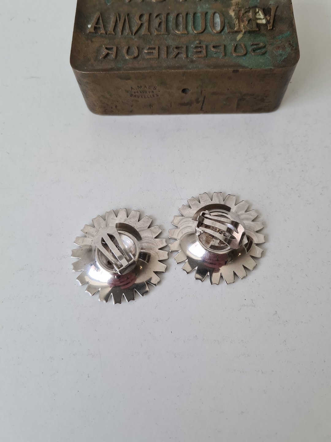 Georg Jensen Margueritte - Daisy øreklips i sterlingsølv og lyseblå emalje 3,2 cm.
