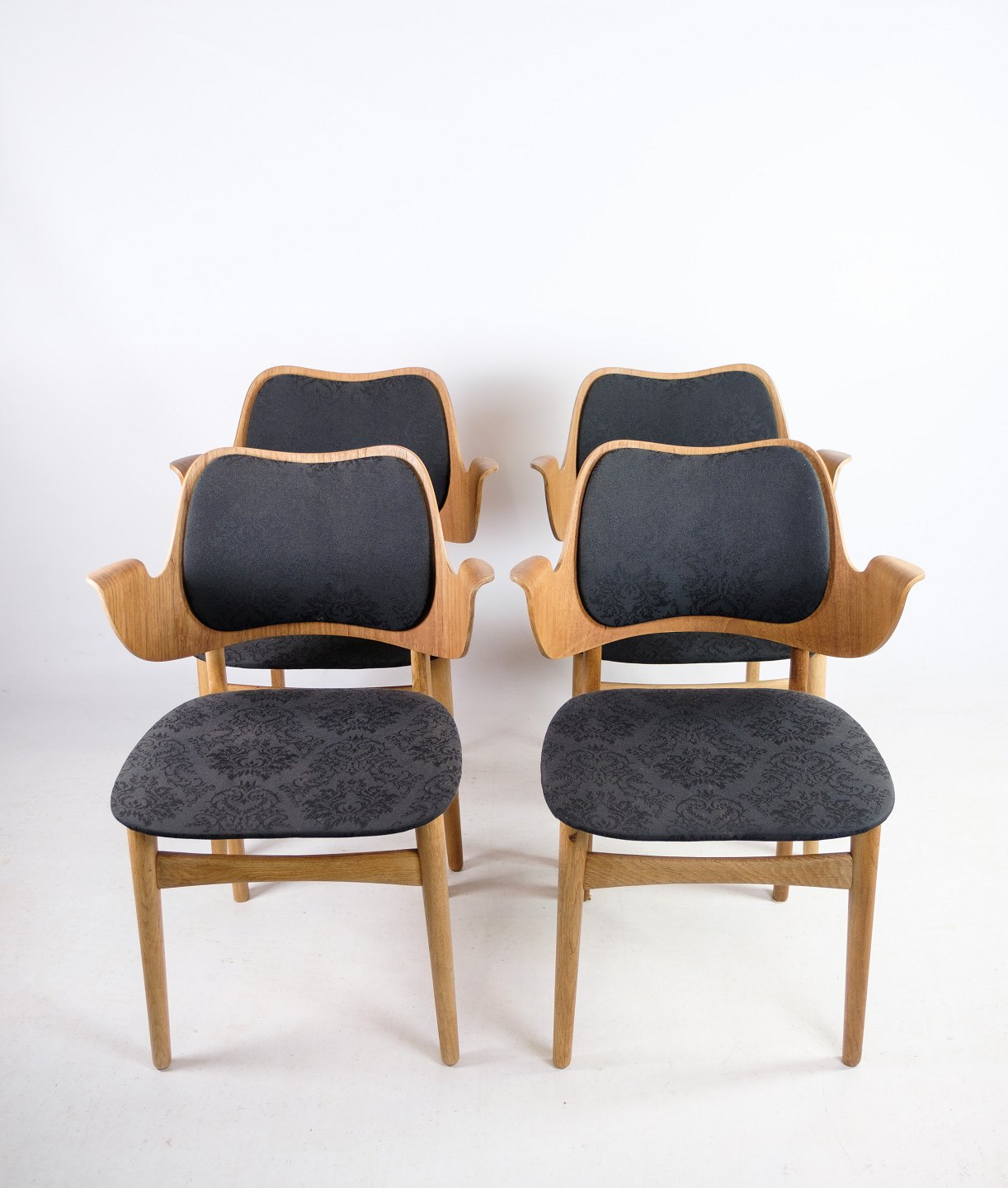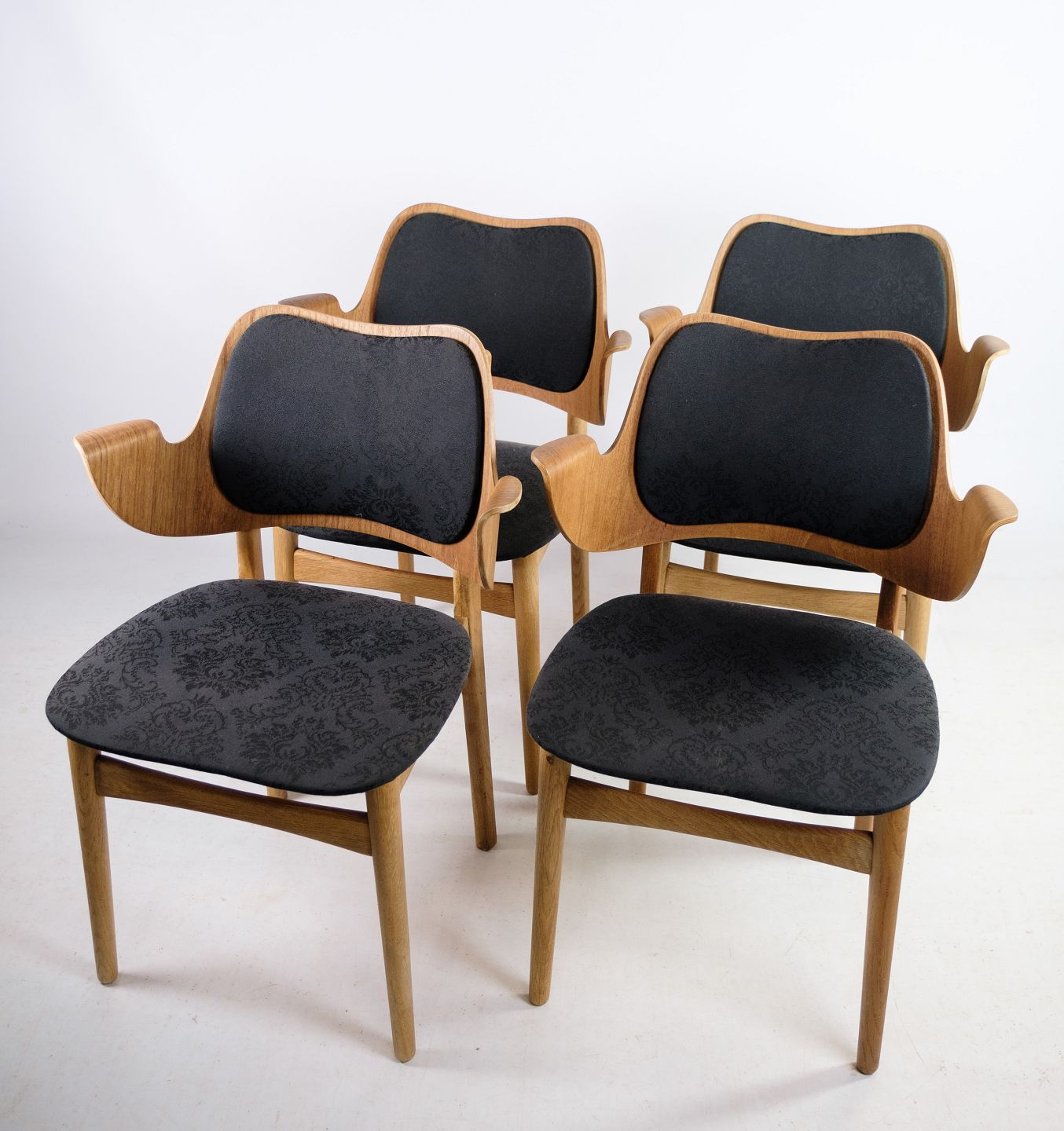 These armchairs are a beautiful example of mid-century modern design. The set of four chairs, model 107, was designed by Danish designer Hans Olsen and produced by Bramin in the 1960s.