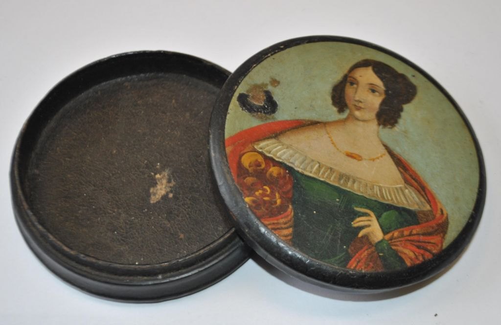 Empire papmache box with hand-painted portrait, 19th century.