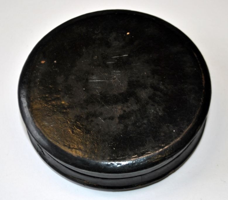 Empire papmache box with hand-painted portrait, 19th century. Portrait of young woman. Dia .: 8.5 cm. H .: 2.2 cm.