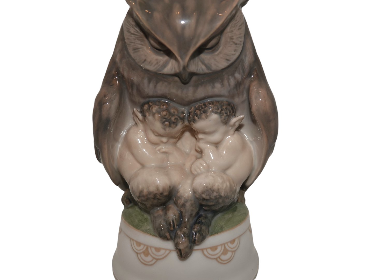 Sjælden og stor Royal Copenhagen figur, ugle med to faune / (pan).
