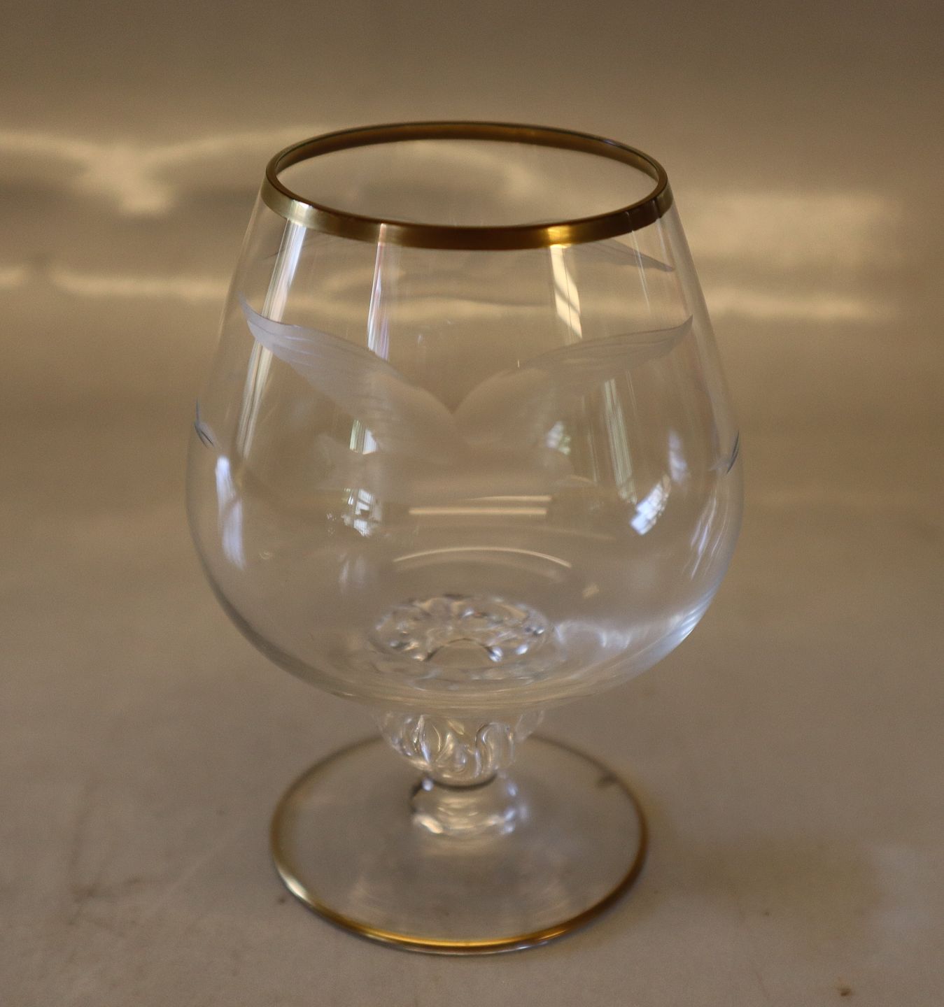 Lyngby Cognac 9 cm. Mågeglas Lyngby glasservicce - drikkeglas med guldkant og slebne måger - slebet glas