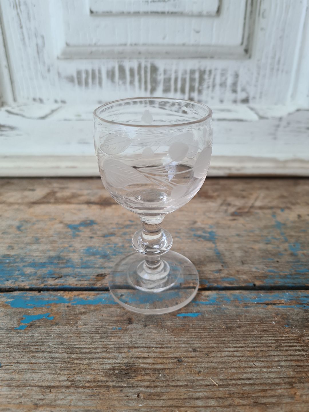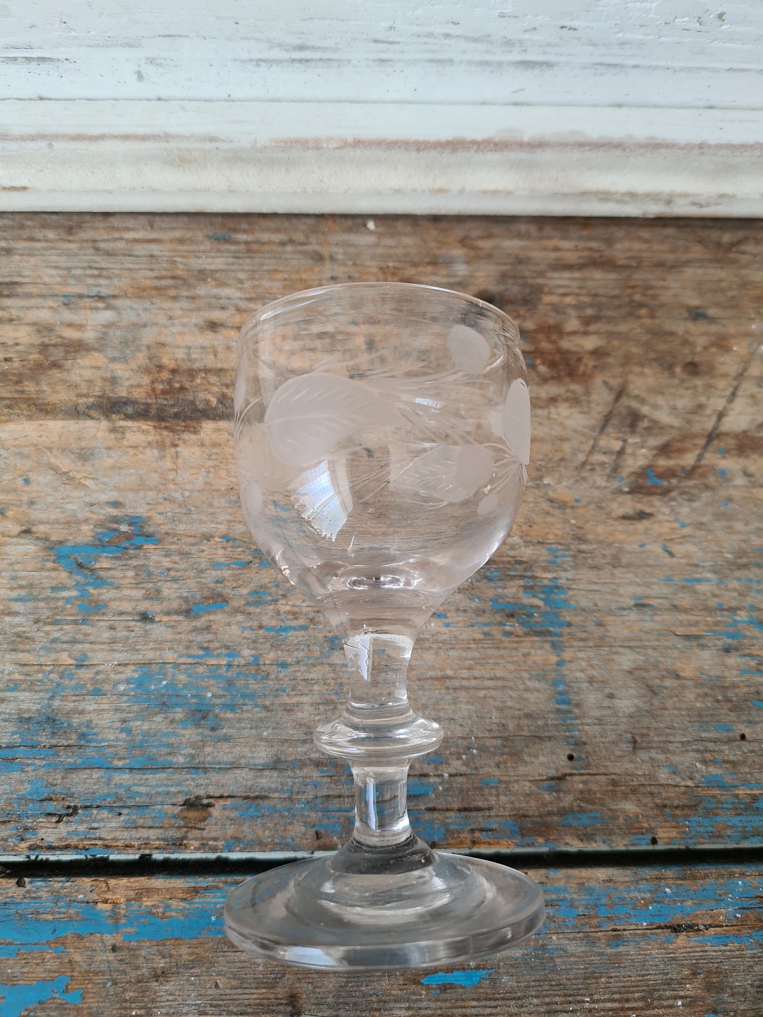1800tals snapseglas med slebet dekoration i form af spidse blade og bær 9,5 cm. |