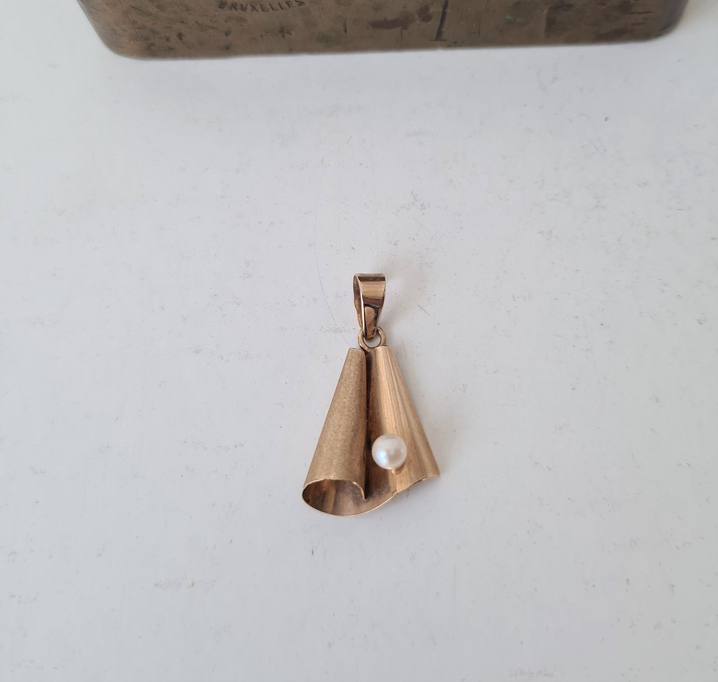 Vintage vedhæng i 8 kt guld med akoya perle af Hermann Siersbøl