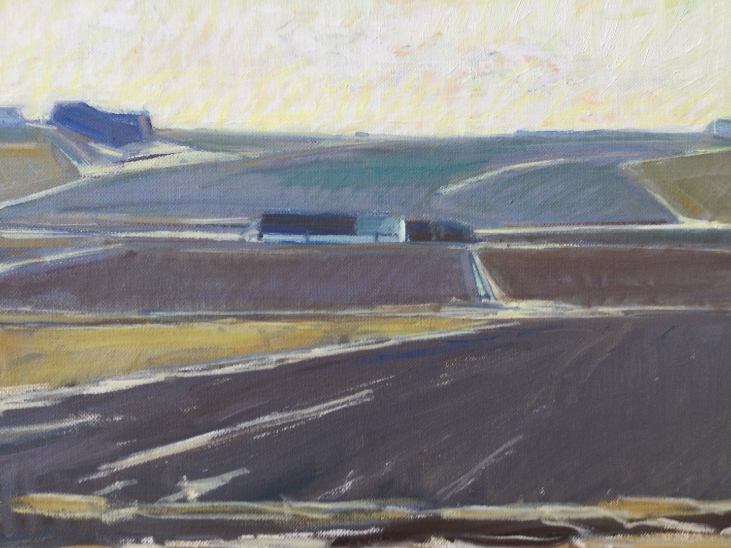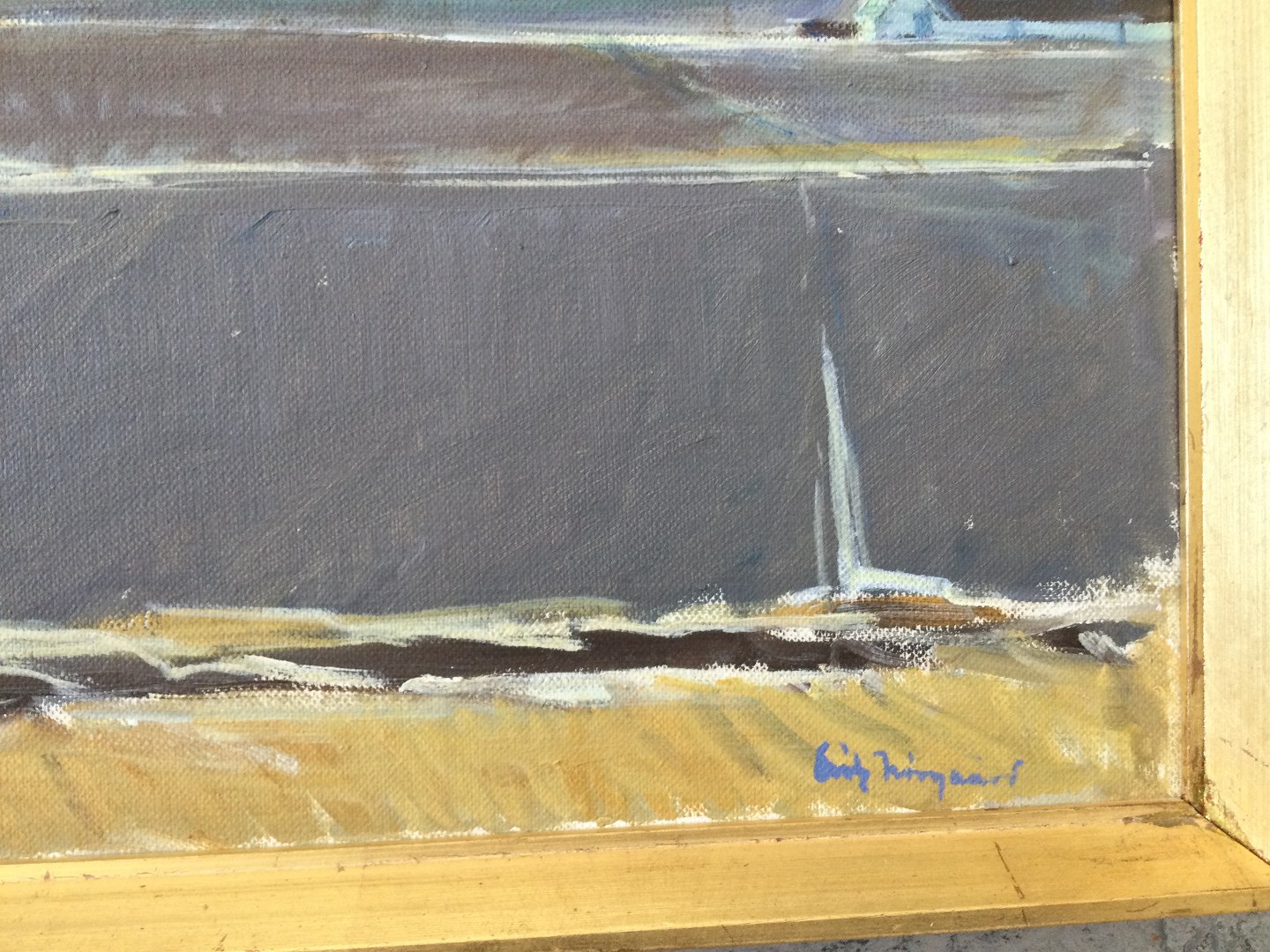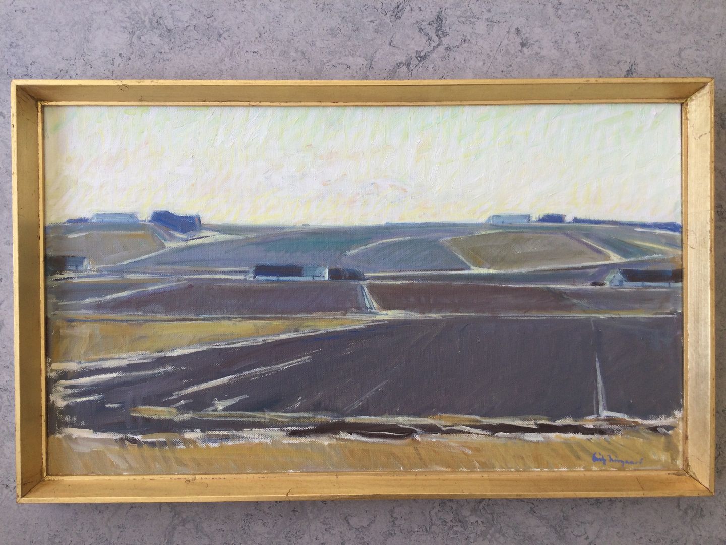 Maleri af Erik Nørgaard - Landskab fra Engbjerg ved Lemvig 1985.