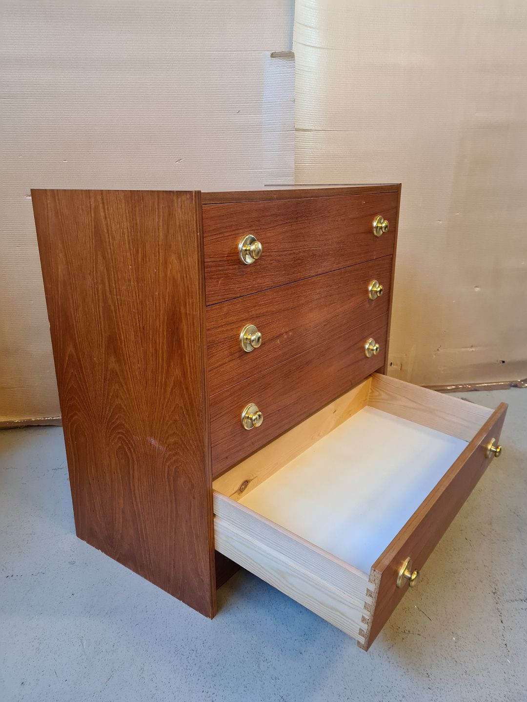 Kommode i fineret teaktræ fra 1970erne.