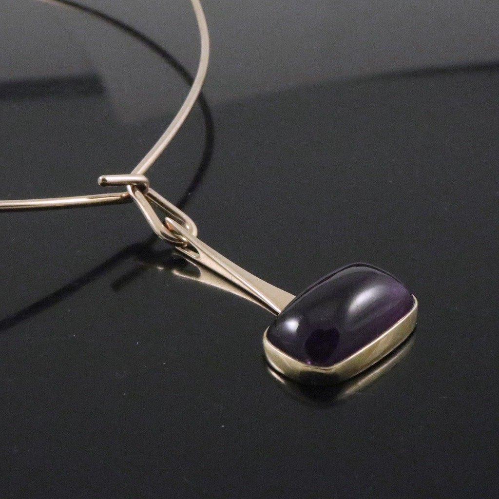 Arne Johansen. Halsring i 14k guld med ametyst-vedhæng.