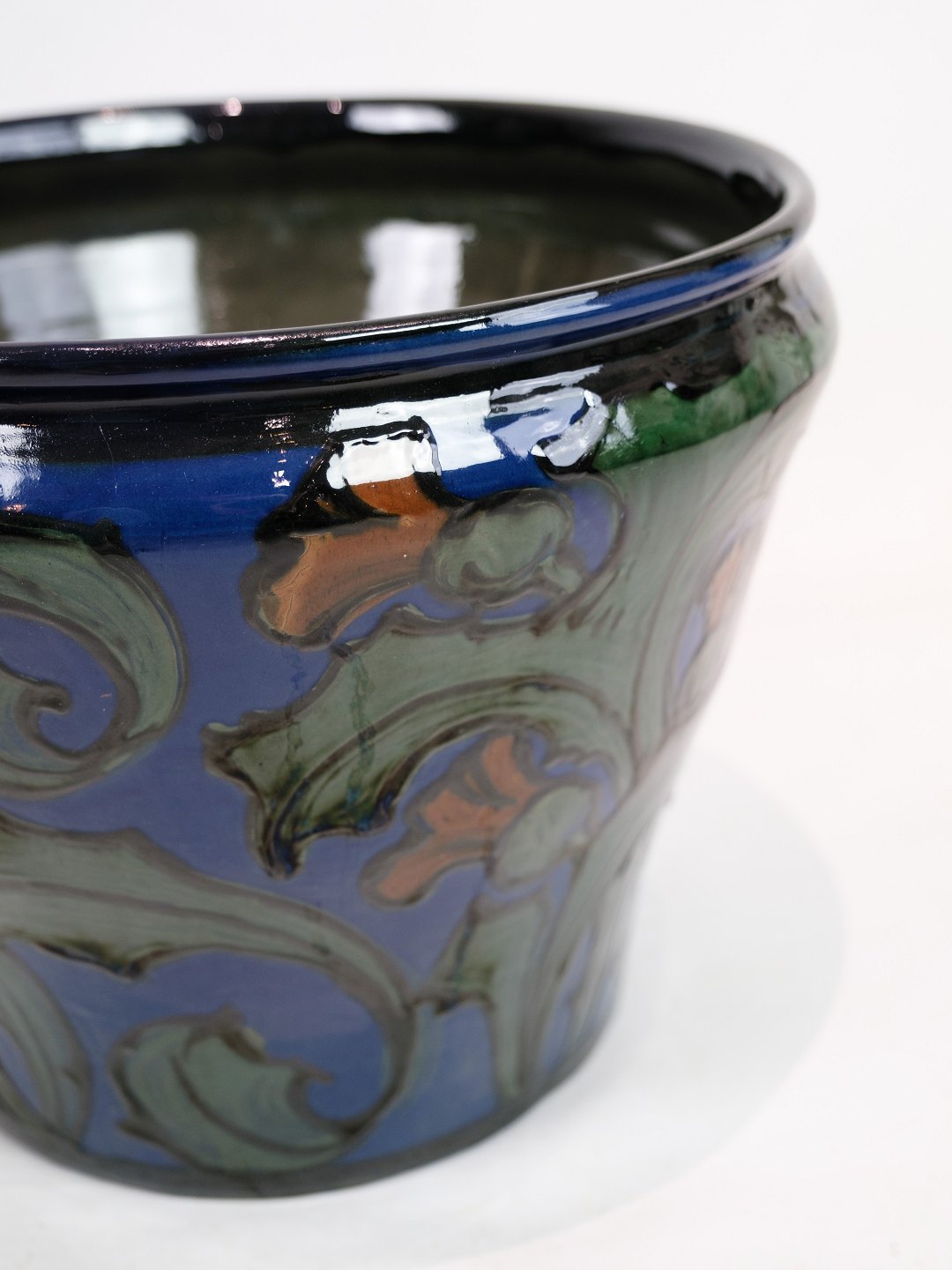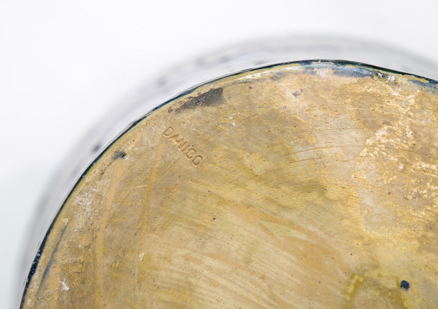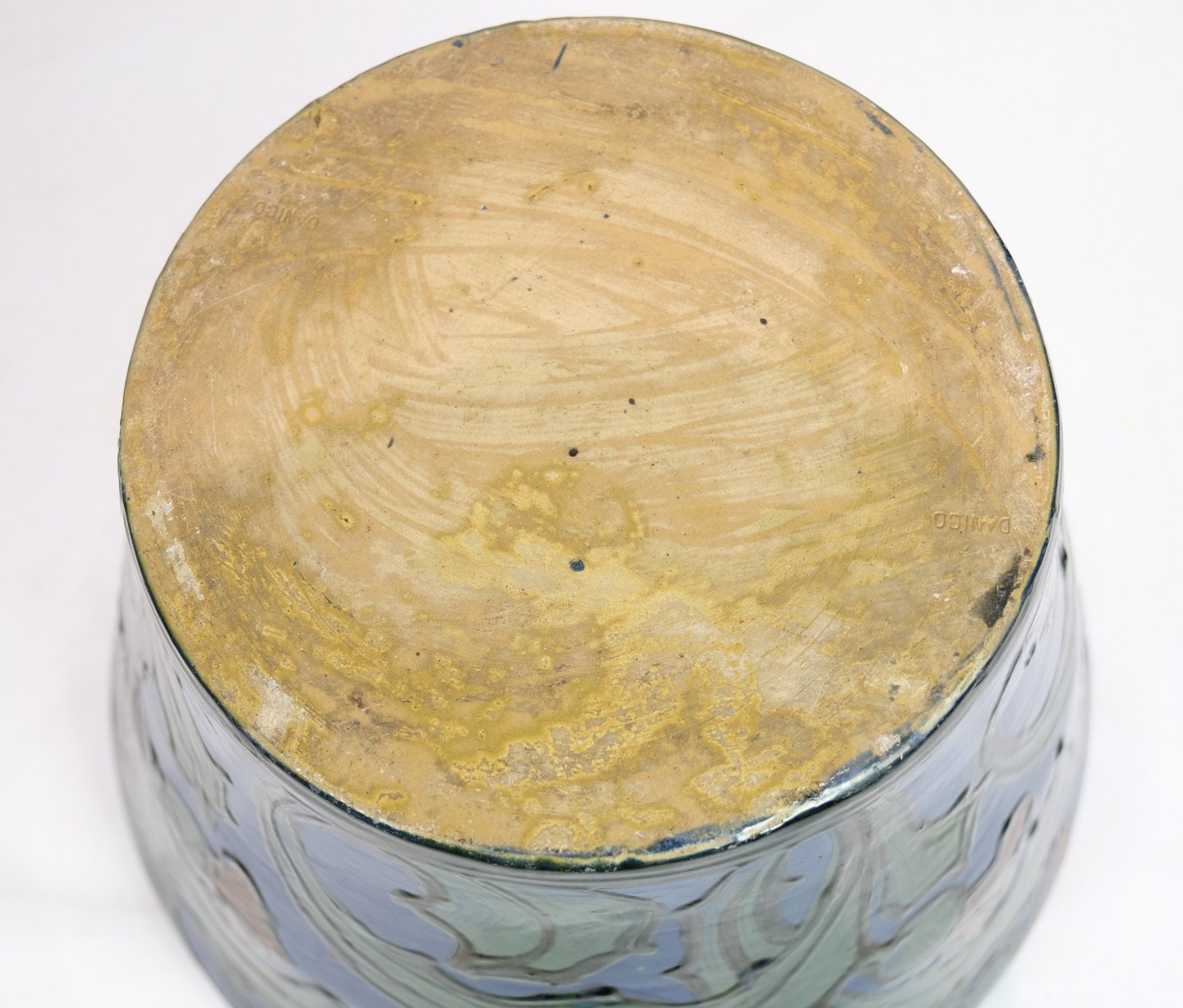 Large flower basin in Danico ceramic with blue and green colors from around the 1960s.