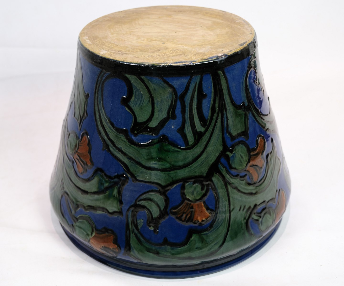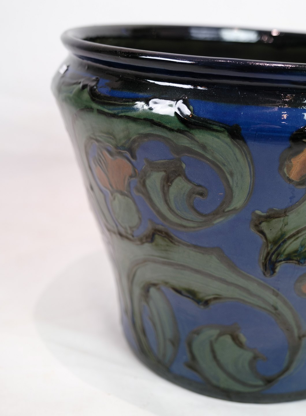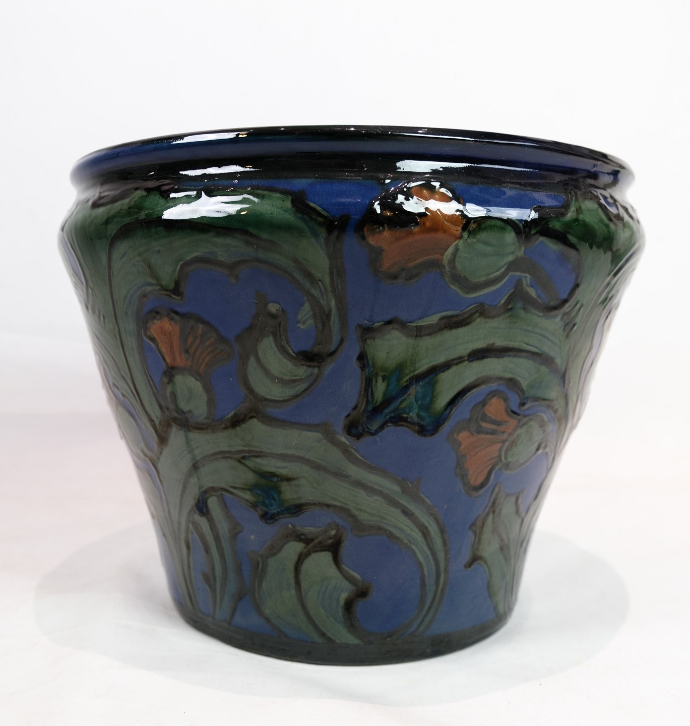 Large flower basin in Danico ceramic with blue and green colors from around the 1960s.