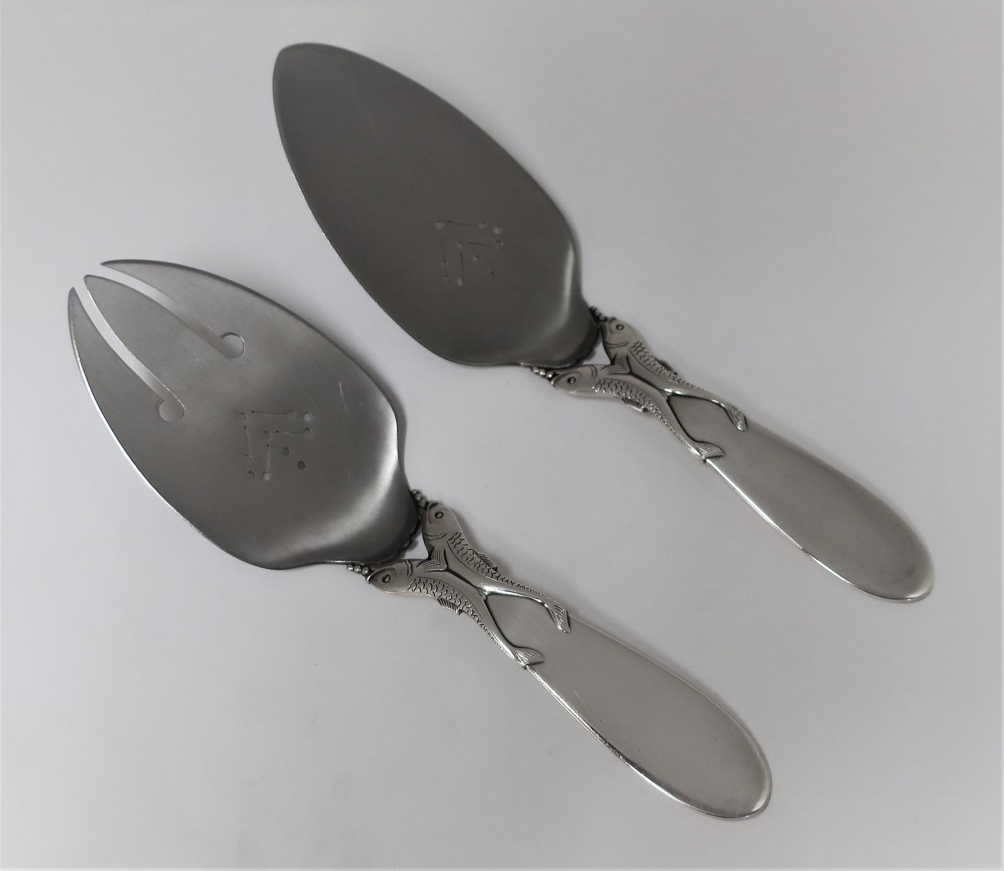 Fiske serveringssæt med sølvhåndtag (830) og stål. Længde 22 cm.