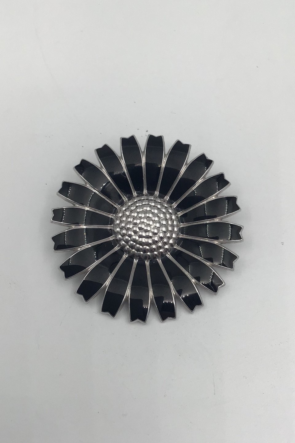 Georg Jensen Sterling Sølv Marguerit Broche, Sort
