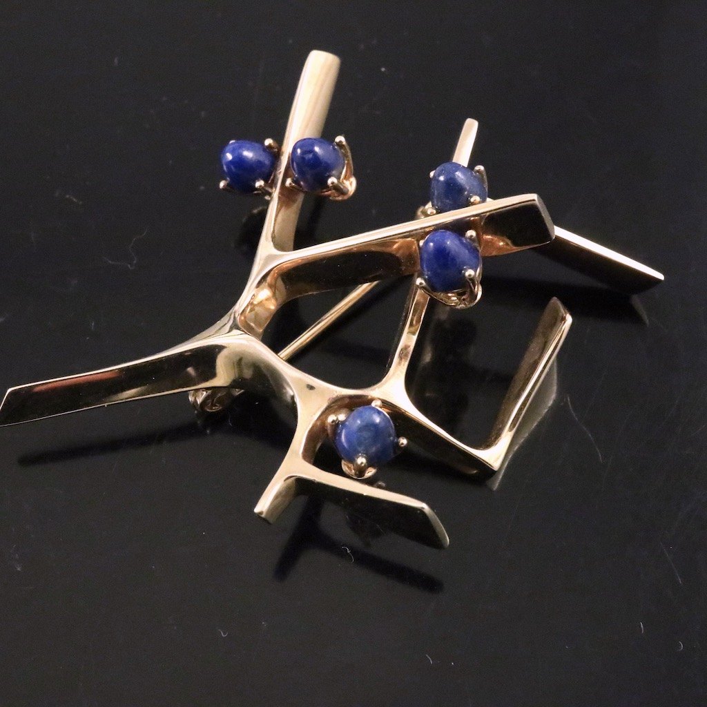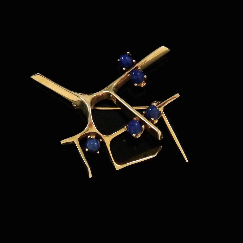 Ole Lynggaard. Brochei 14k guld med Lapis Lazuli.