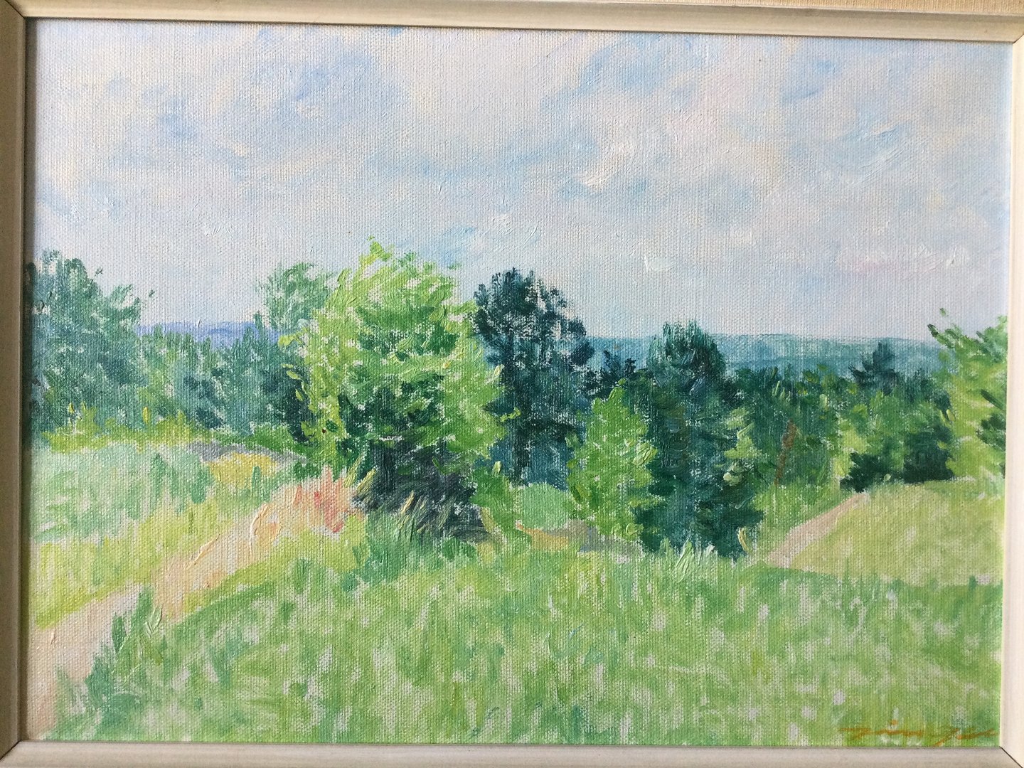 Maleri af Jørn Glob - Lysegrønt landskab.