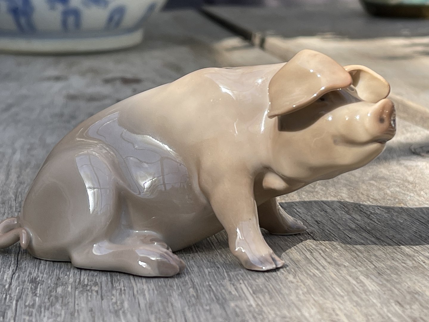 Porcelænsgris af Jens Peter Dahl Jensen (Dahl Jensen) for Bing & Grøndahl, form nr. 1582, DKK 550